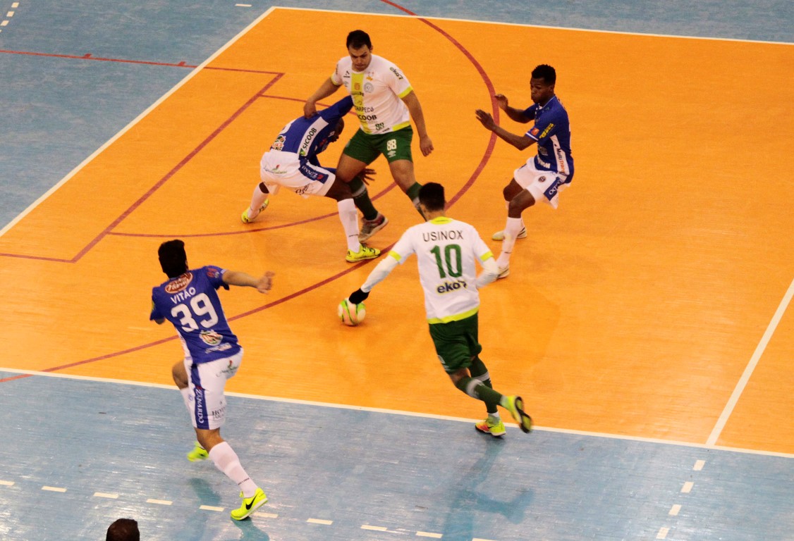 Joaçaba acabou excedendo o número de faltas e a Chapecoense aproveitou para no tiro livre abrir o placar e ampliar ainda no primeiro tempo com Mayco por duas vezes. No segundo tempo trabalhando muito com o goleiro linha, Joaçaba conseguiu descontar com Matheus, mas também expôs o time e na falha Joãozinho fechou os números, Joaçaba Futsal 1 x 3 Chapecoense Futsal.