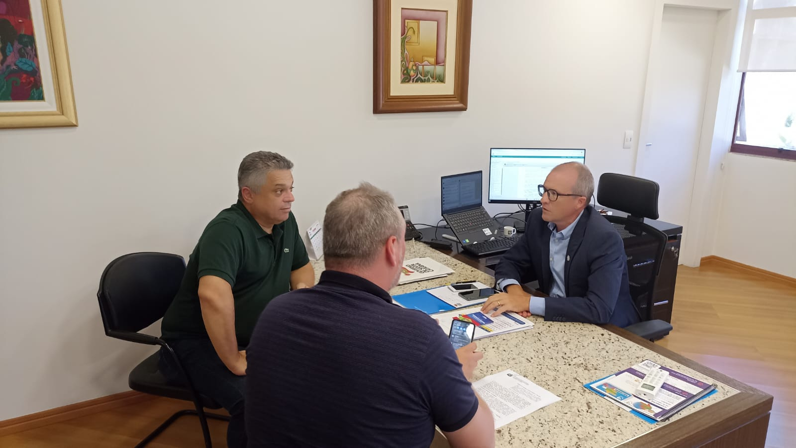 O prefeito de Chapecó, João Rodrigues, esteve reunido no início da tarde desta segunda-feira com o secretário de Administração do Estado, Moisés Diersmann. O assunto principal foi a conclusão do processo de municipalização EEB Luiza Santin, da EEB Neiva Maria Costella e EEF Alécio Alexandre Cella.