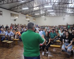 Os filhos de vocês poderão ter aulas de robótica, informática, pintura e música, de graça, no Centro Multiuso. E até o final do ano vamos asfaltar 100% das ruas do Santo Antônio. O cadeirante podera ir ao posto de Saúde. E a Arena Poliesportiva, no Belvedere, vai sediar jogos das equipes de Chapecó e até de seleção", disse o prefeito.