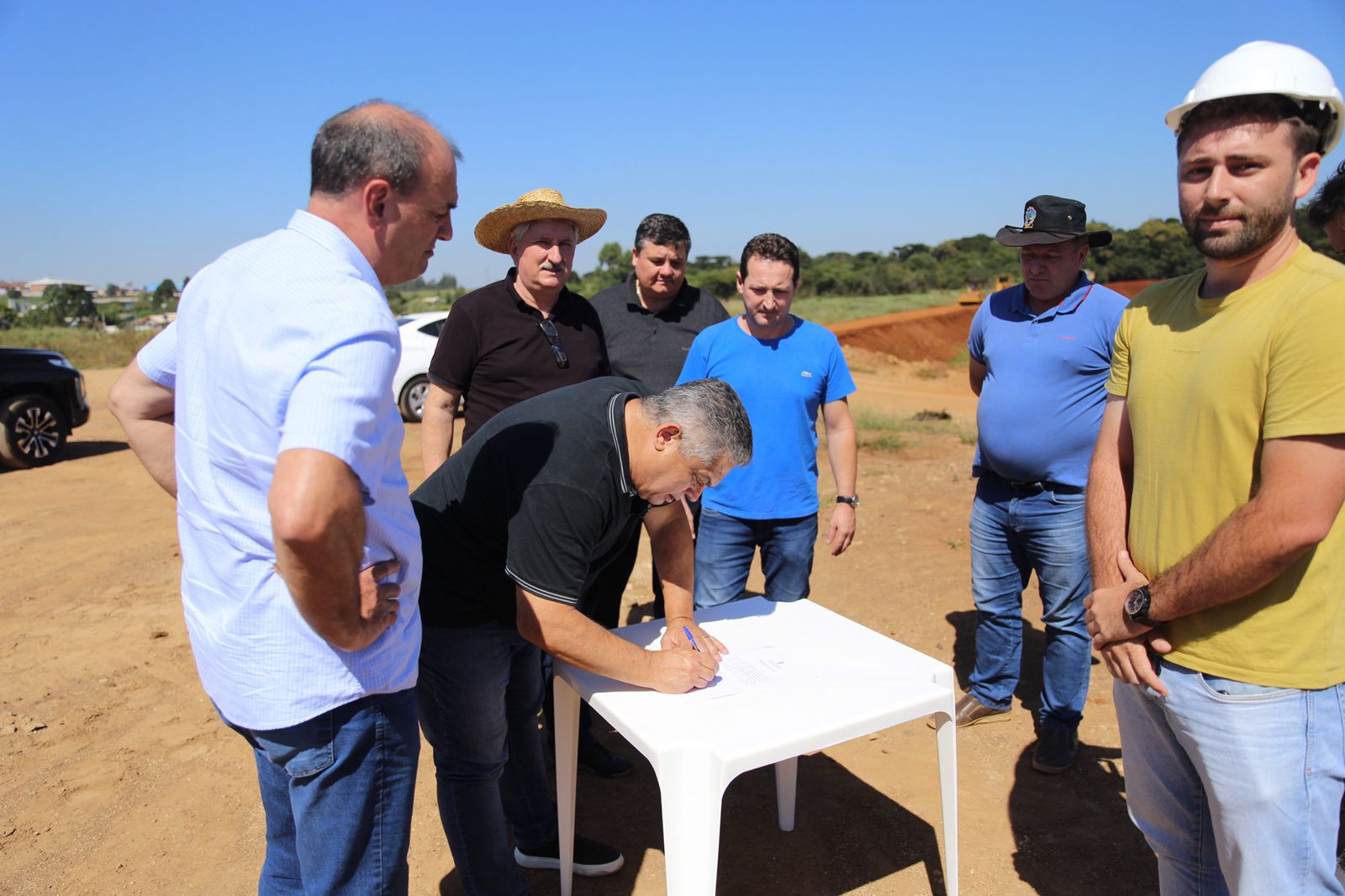 Foi assinada na manhã desta terça-feira a ordem de serviço para a última etapa das obras do Parque Eldorado, uma área de 200 mil metros quadrados, que leva o nome do bairro onde está localizado. Será o maior parque da cidade de Chapecó, com playground, quadras para prática de esportes, pista de caminhada, espaço para pets e food trucks, além de um lago, que servirá de pulmão para abastecimento da cidade em períodos de estiagem, disse o prefeito João Rodrigues.