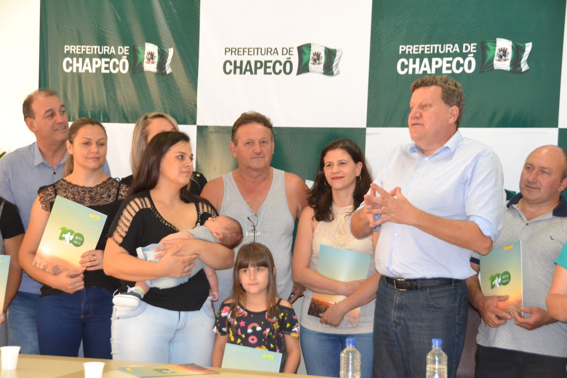 O prefeito de Chapecó, Luciano Buligon, explicou que a Regularização Fundiária é um dos principais compromissos da Administração Municipal, pois entende a importância que esse processo tem na vida das famílias envolvidas. Ele falou sobre as diversas áreas em Chapecó que estão passando por esse processo de regularização e destacou que algumas regiões já estão concluídas. Já entregamos escrituras para os moradores do Goio-en que agora podem dizer que tem um endereço, comemorou. Ele convidou os moradores para uma visita no Gabinete e mostrou um quadro com uma mapa de Chapecó e todas as regiões que precisam passar por esse processo. Eu tenho esse quadro para lembrar todos os dias, finalizou.