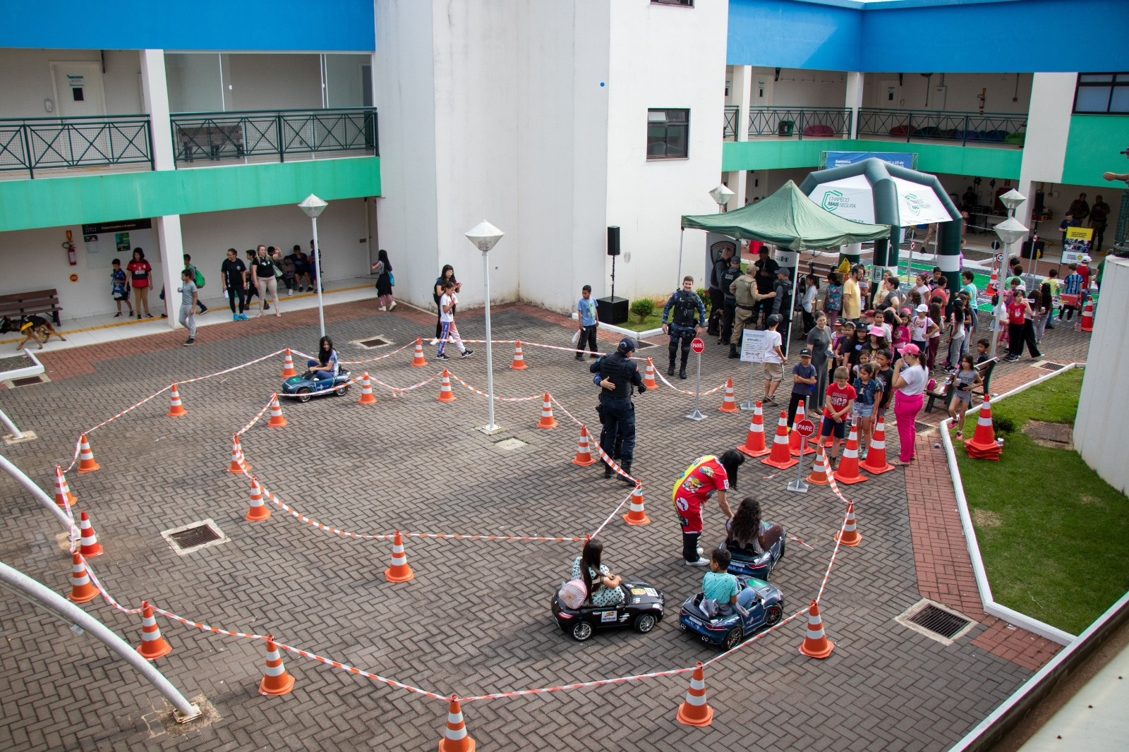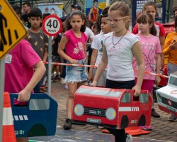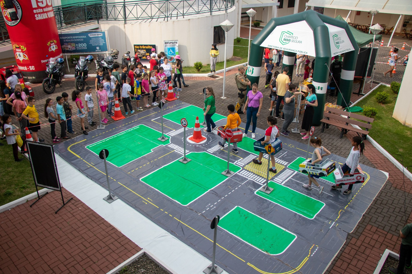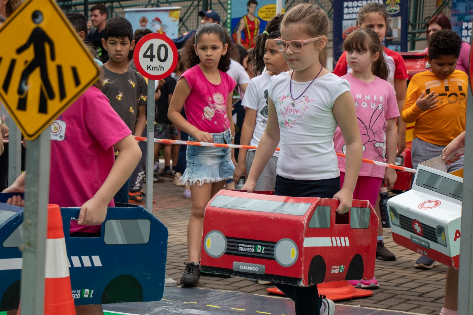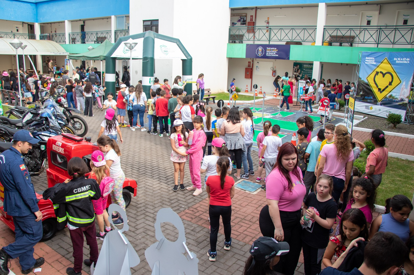 As atividades desenvolvidas ocorrem na UNOESC e na UNOCHAPECÓ, onde foram organizados espaços para a promoção de palestras, teatro e exercícios práticos de simulação das leis de trânsito e de condução segura. O objetivo é conscientizar estudantes, entre 7 e 9 anos, sobre como agir de forma responsável no trânsito.