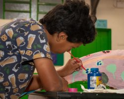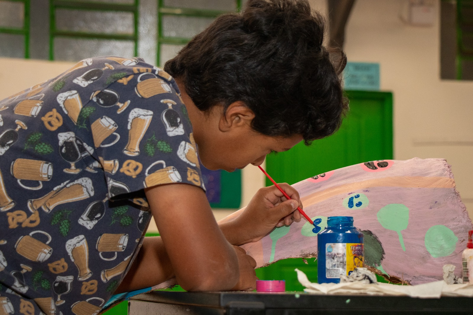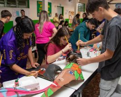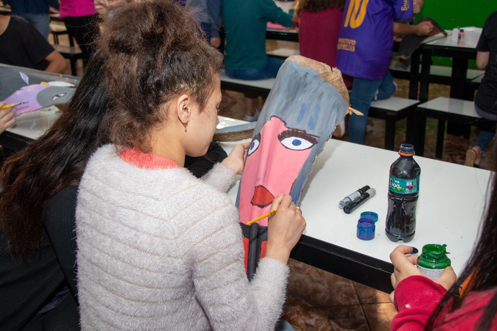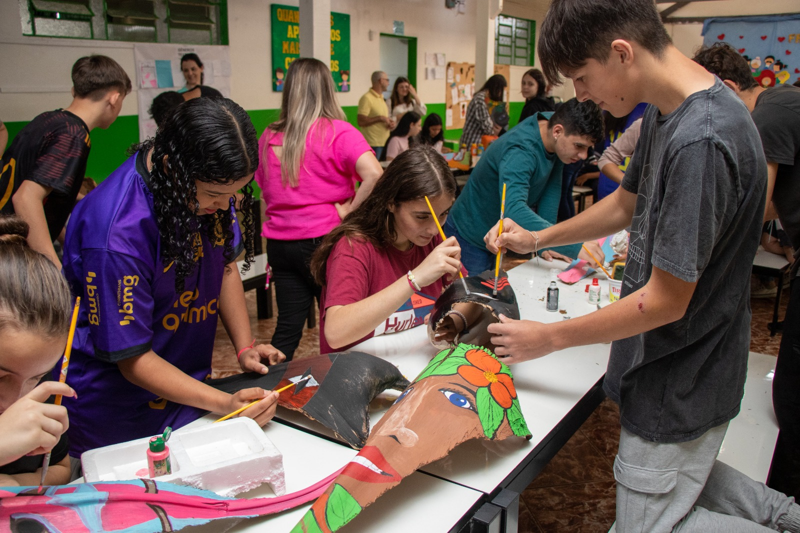 A aluna Valentina Gabrieli Fagundes da Silva, do 9º ano, contou que escolheu cores vivas para deixar sua obra alegre e bonita. Não imaginávamos que um dia faríamos uma atividade como essa, e nem que seríamos capazes de fazer ela, mas no fim nós conseguimos e foi muito legal, destacou a estudante.