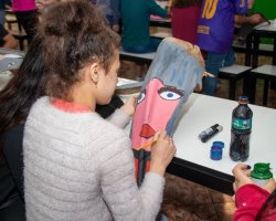 As turmas de 6º a 9º ano, da EBM Linha Campinas, vivenciaram uma experiência diferenciada nas aulas de Arte, do professor Ivandro Garcia da Silva. A atividade preparada pelo docente abordou o tema do significado cultural das máscaras em diferentes grupos étnicos. Para isso, os estudantes confeccionaram e pintaram máscaras em folhas de coqueiro.