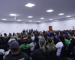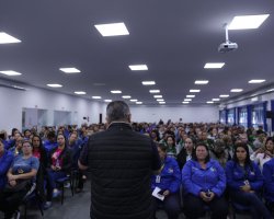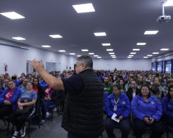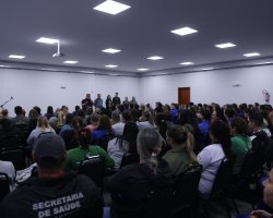 A partir de segunda-feira (02) haverá mudança no horário de trabalho para os Agentes Comunitários de Saúde (ACS) e para os Agentes de Combate as Endemias (ACE). O anúncio foi realizado pelo Prefeito João Rodrigues, em reunião com as equipes e que aconteceu na sexta-feira (29) no Centro de Cultura e Eventos Plínio Arlindo De Nes. Participaram da atividade também o Secretário Adjunto de Saúde, Osmar Arcanjo; a Diretora de Atenção a Saúde, Gessiane Larentes, o Gerente de Vigilância em Saúde, Rodrigo Momoli; a Coordenadora de Vigilância Ambiental, Karina Giachini; a Coordenadora dos Agentes Comunitários de Saúde, Adriana Schmoeller.