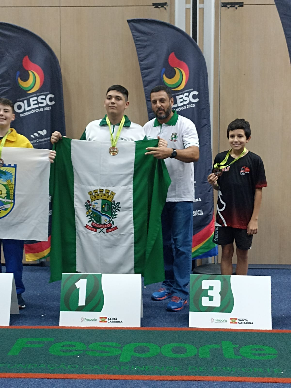 A Olimpíada Estudantil Catarinense (OLESC) encerrou nesta semana e, ao final da competição, Chapecó conquistou 25 medalhas, sendo que em 19 delas tivemos a participação de atletas formados pelo Programa Atleta do Futuro (PAF) da Fundação de Esporte de Chapecó (FEC).