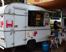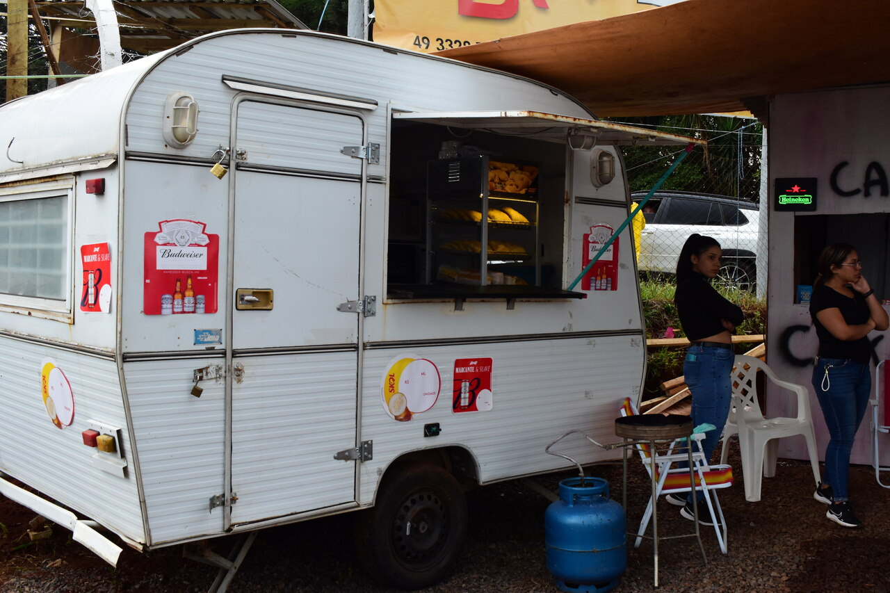 É isso que conta a empreendedora Jaqueline Ribeiro Paz, que em parceria com conhecidos abriu uma venda de comidas próximo ao portão 2 da entrada da Efapi. "A ideia surgiu de uma conversa e parceria. O meu marido é amigo do pessoal da Uno, e sempre trabalhou ali, acabaram conversando e surgiu a ideia", declara. Jaqueline, que já trabalhava com eventos antes, está participando da feira pela primeira vez, e conta que pretendem ficar abertos às 24 horas todos os dias da Efapi, com revezamento do atendimento, já que estão 12 pessoas na equipe toda.