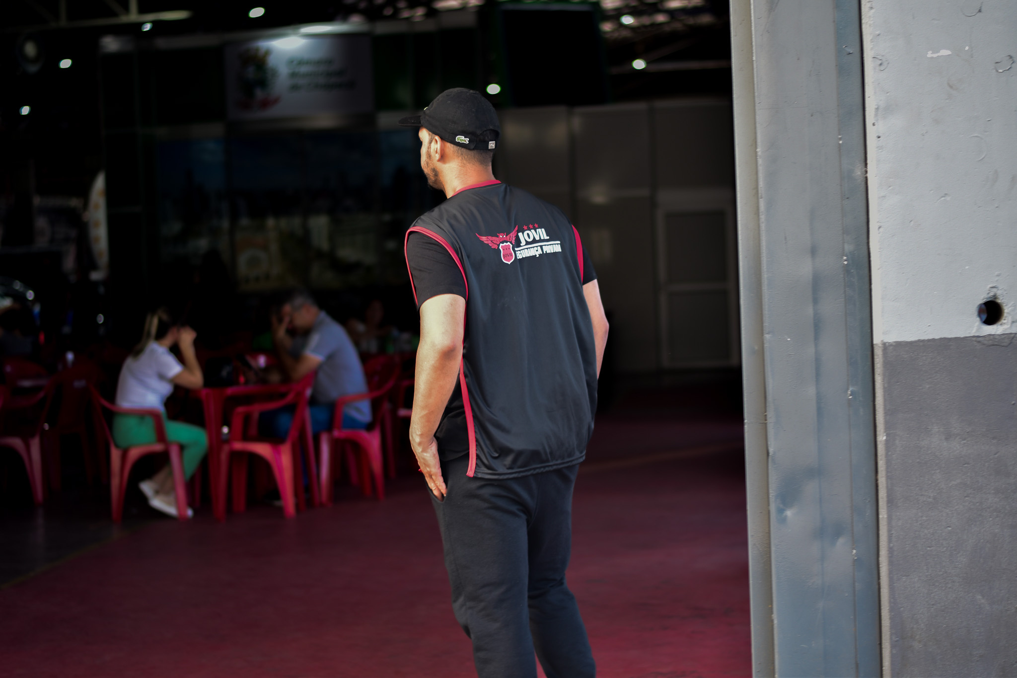 Nos dias de semana as portas do evento abrem às 15h, mas a Larissa Moro, porteira do evento, chega às oito da manhã para recepcionar os visitantes e expositores. Larissa conta que trabalha das oito às oito, mas que às vezes, dependendo da função que foi designada, passa algumas horas a mais na exposição. Para dar conta de marcar presença nos dez dias de feira, dezenas de pequenos comerciantes que são instalados em trailers e barraquinhas, cochilam em colchões espalhados pela mini cidade de negócios.