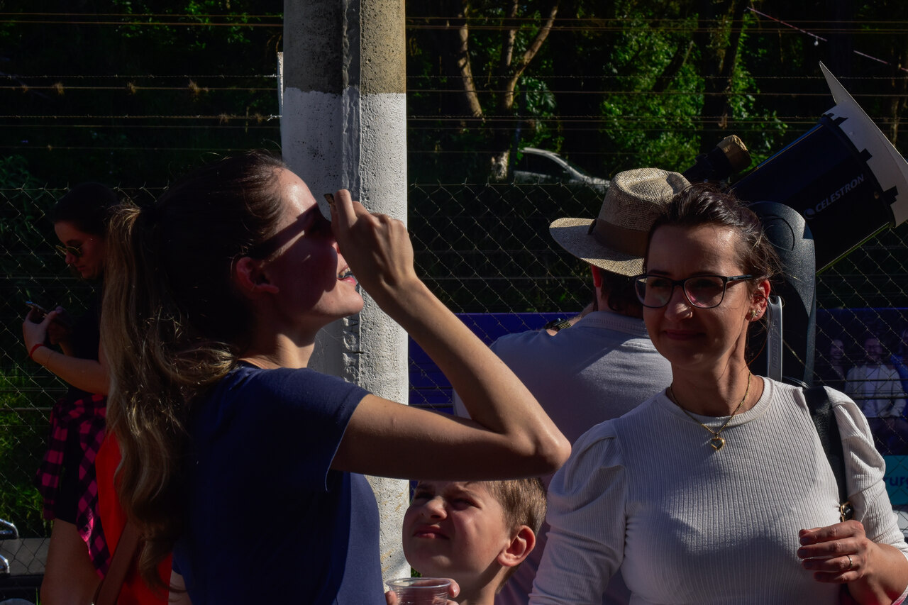 Fernanda Paulista dos Santos conta que ficou sabendo do evento por meio de um grupo de whatsapp da associação. "Eu tinha me programado para vir até a Efapi hoje, e aproveitei para ver o eclipse. Achei muito legal, nunca havia presenciado um eclipse antes", comenta.
