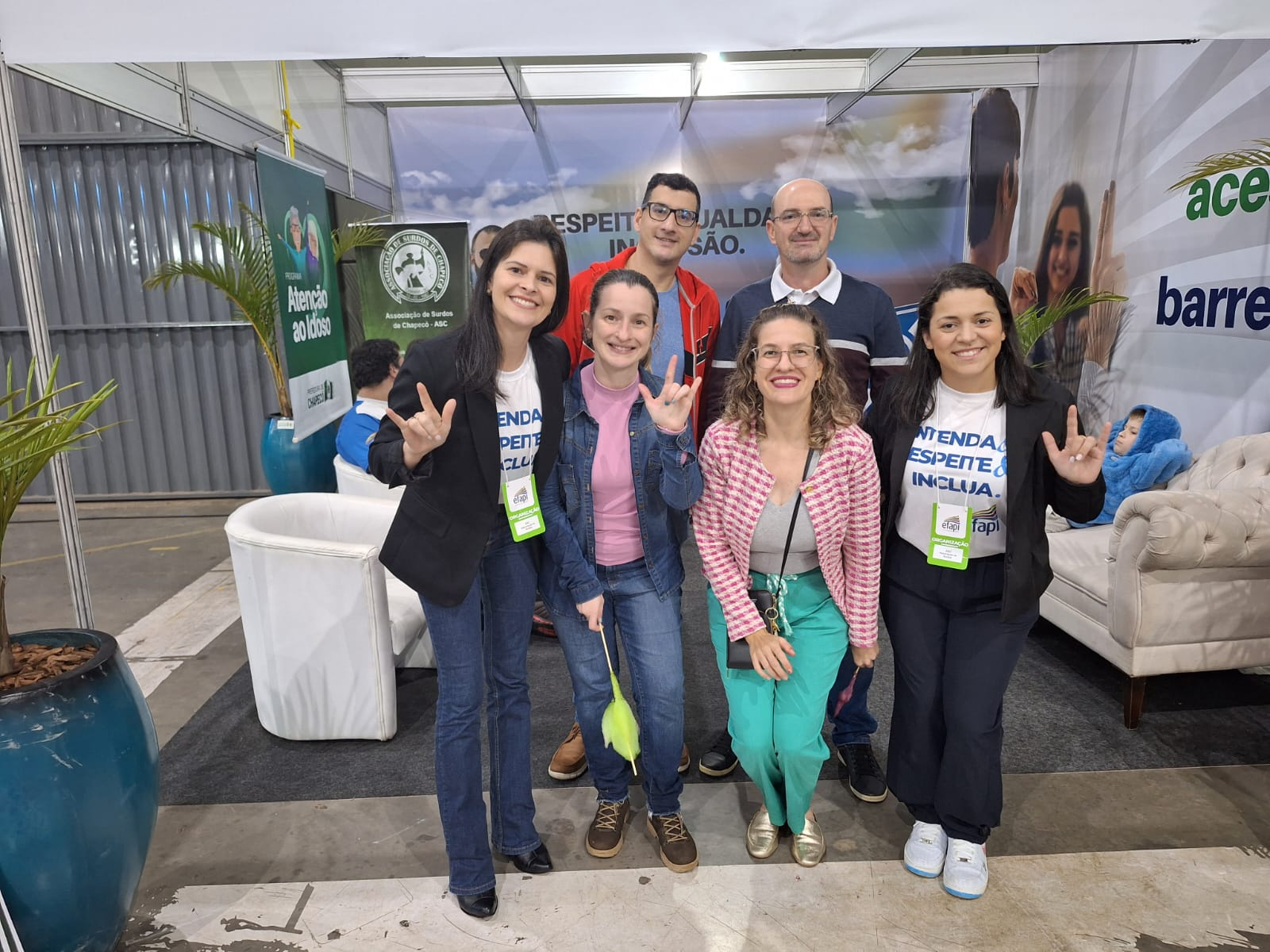 Durante a Efapi 2023 a Associação de Surdos de Chapecó esteve todos os dias atuando voluntariamente com serviços de tradução e interpretação para garantir as pessoas surdas o direito a comunicação em Libras e acesso a feira.