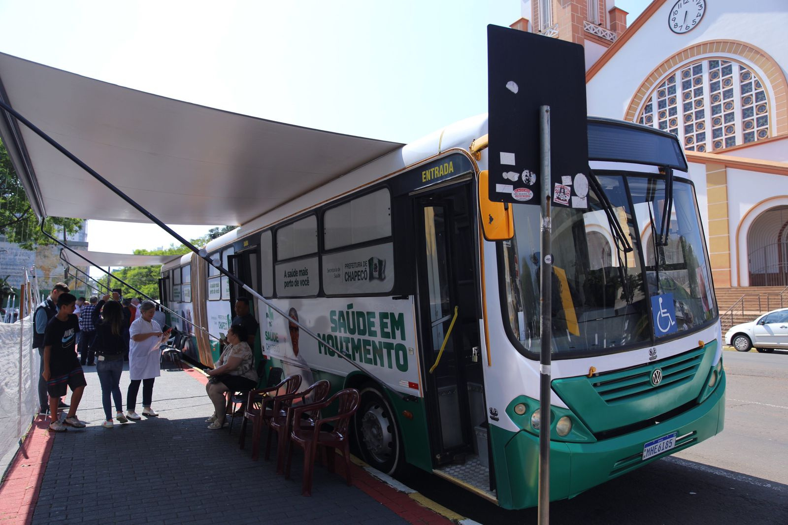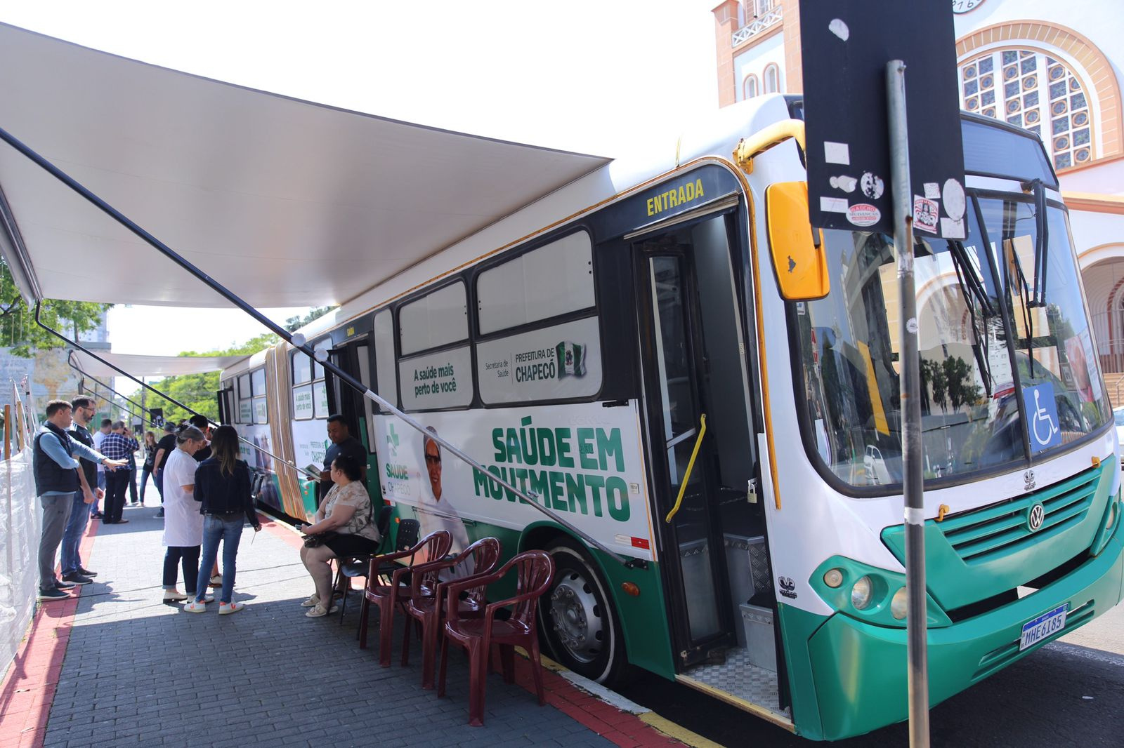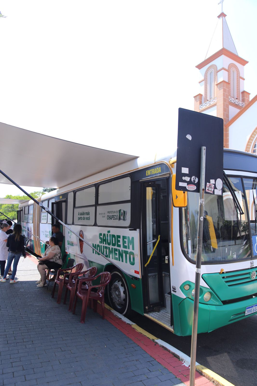 O ônibus do Programa Saúde em Movimento também participou das ações. Ele esteve na praça Coronel Bertaso, com serviços de orientação e exames de saúde bucal, orientação para solicitação de mamografia, coleta de preventivo, realização de testes rápidos, cadastros no tele.saúde Chapecó e vacinação. Neste serviço foram encaminhados 16 orientações para solicitação de mamografia, 34 controles de pressão arterial e medição de glicemia capilar, 2 coletas de preventivo, 2 testes rápidos para detecção de IST e foram aplicadas 20 vacinas e realizados 88 procedimentos odontológicos.
