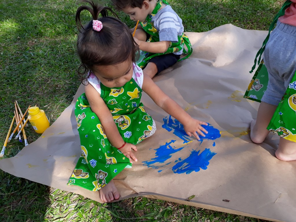 A intenção é estimular a criatividade através da pintura com materiais diversificados e com isso desenvolver diferentes formas de expressão, explorando e ampliando a coordenação motora, percepções visuais e táteis, oralidade, cores, texturas, sensações e movimentos.