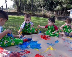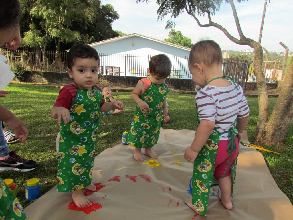 De acordo com a professora Fabiane Rodrigeri as atividades do projeto iniciaram com tinta guache, carimbando as mãos e os pés das crianças com as cores primárias no papel pardo. Também foi trabalhado com música, massinha de modelar, giz de cera e com garrafas pets. As crianças estão animadas com o projeto, participando com vivacidade de todas as atividades. Nessa atividade em especial, gostaram muito de poder manusear tintas e pincéis livremente, pintavam o pé e a mão antes de carimbar no papel, imitando outras atividades já realizadas em sala de aula, comentou.