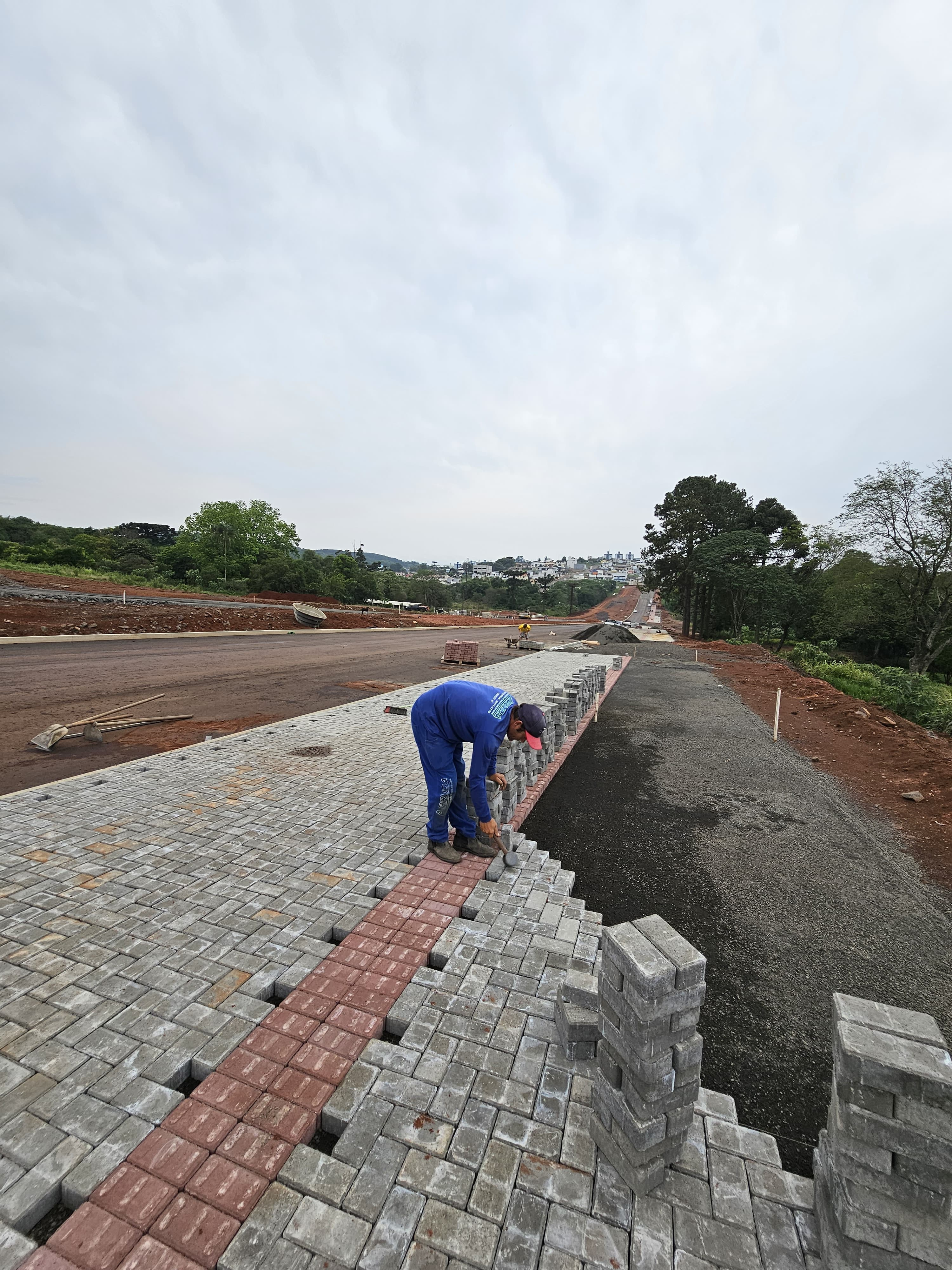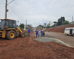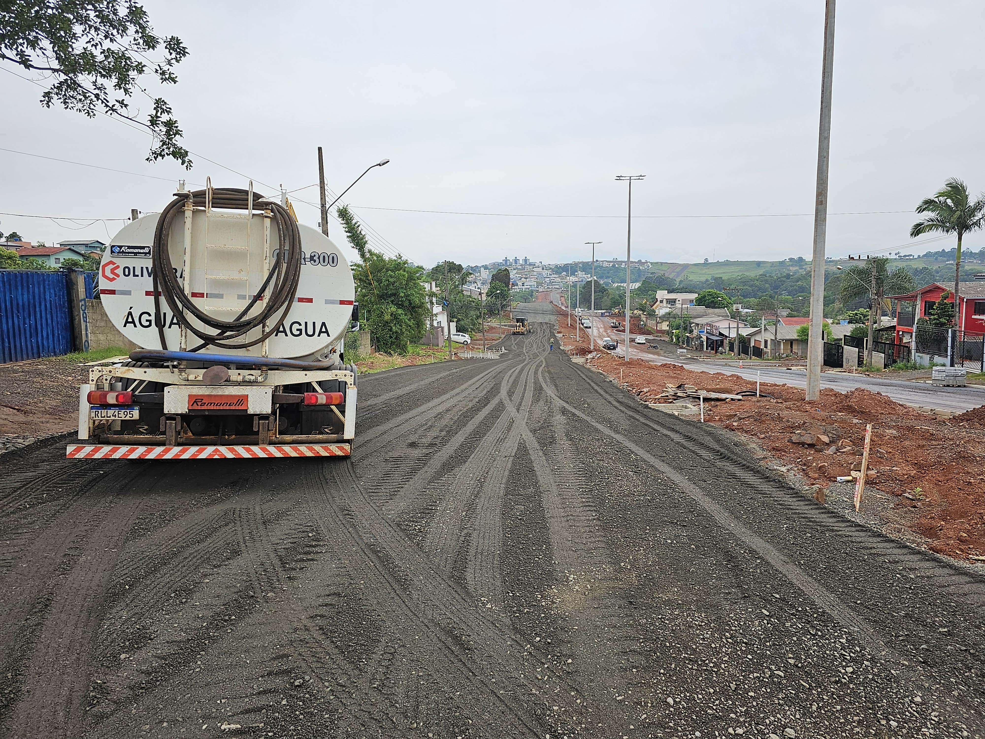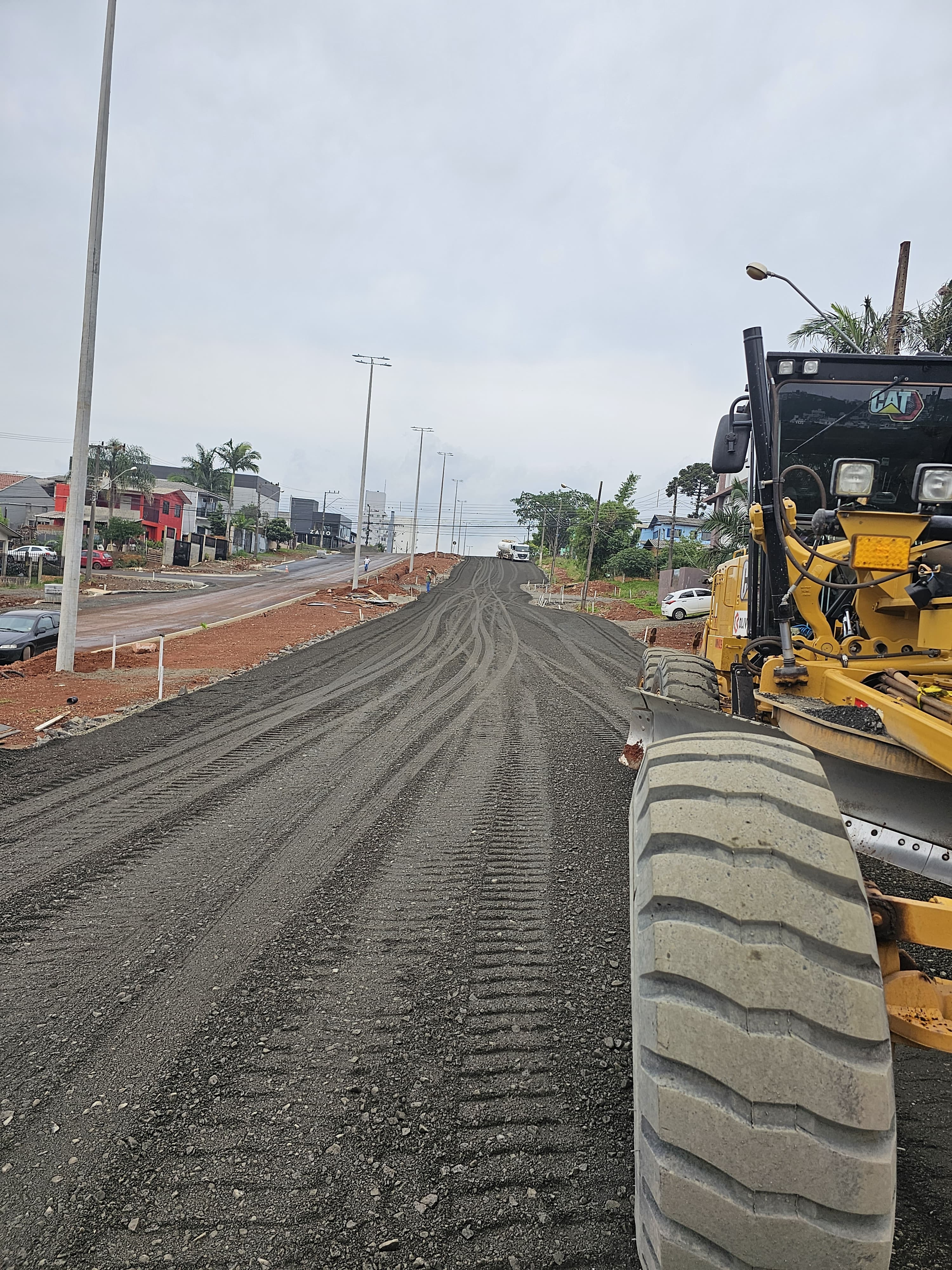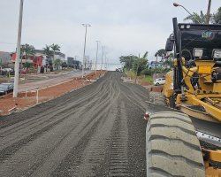 E no lado esquerdo foram pavimentados 710 metros entre as ruas Valmor Piazza e Tapajós. Em alguns pontos a base já está pronta para receber o asfalto.