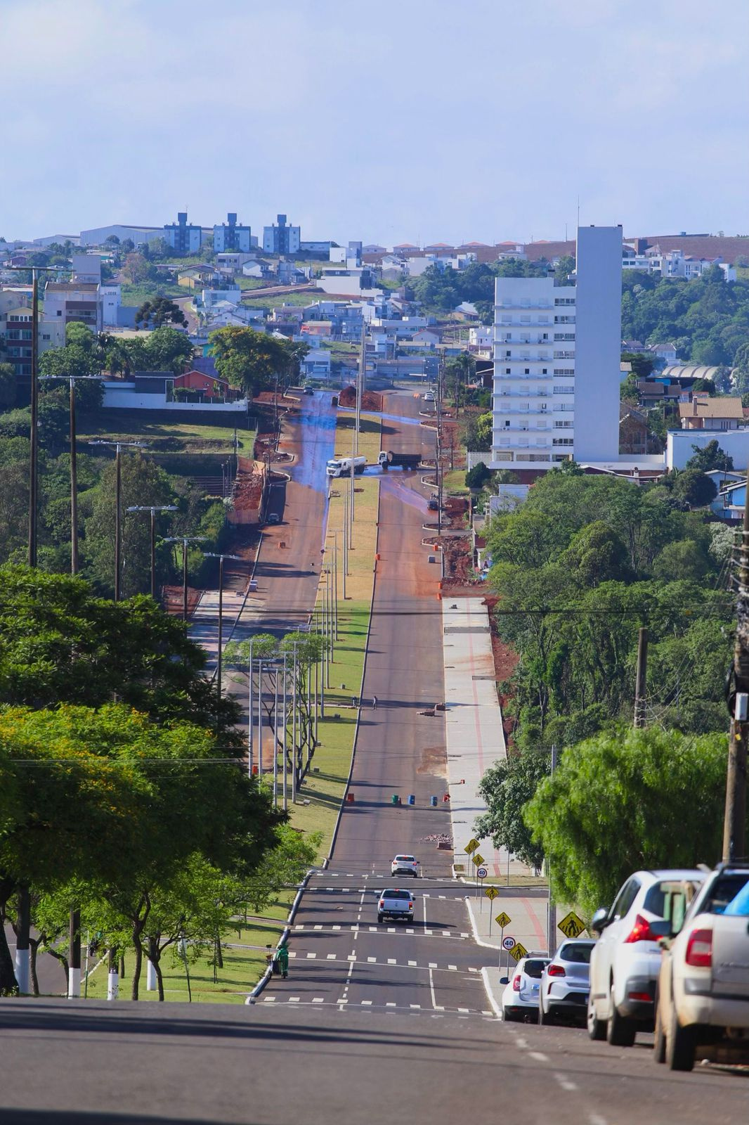 Mesmo durante a realização dos trabalhos em parte da avenida já tem trânsito local circulando em cima do asfalto. De acordo com informações da Construtora Oliveira, responsável pela obra, já foi pavimentado quase todo o lado direito da via (no sentido Centro/Sul), totalizando 1,5 km dos 1.716,99m da obra, entre a rua Valmor Piazza e a avenida Paschoal Cortelini.