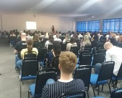 A capacitação ocorreu no Centro de Cultura e Eventos, executada pelo Serviço de Atendimento Especializado (SAE). Participaram cerca de 180 profissionais de saúde, sendo ministrada pela médica Paula Luisa Bach.