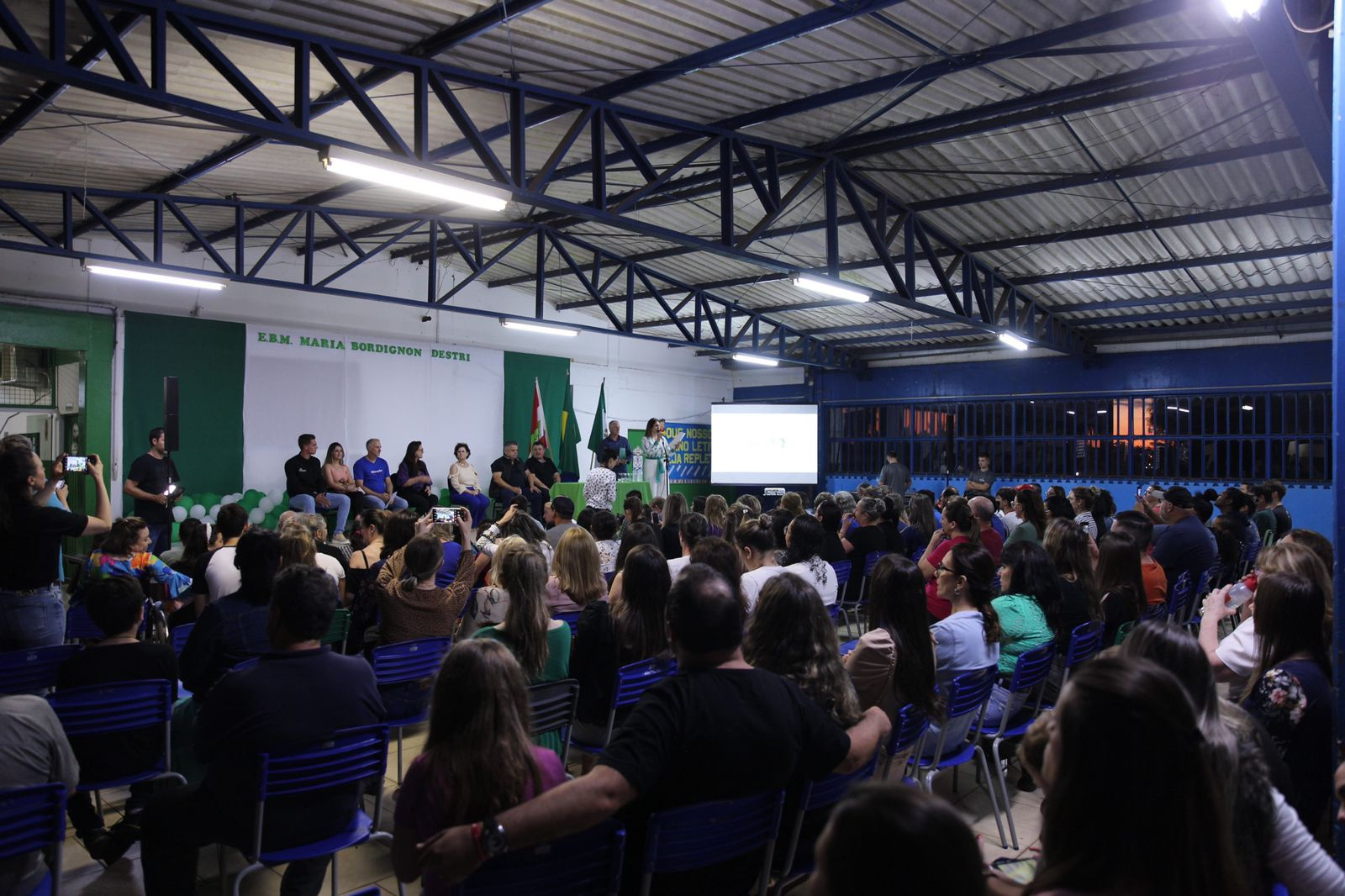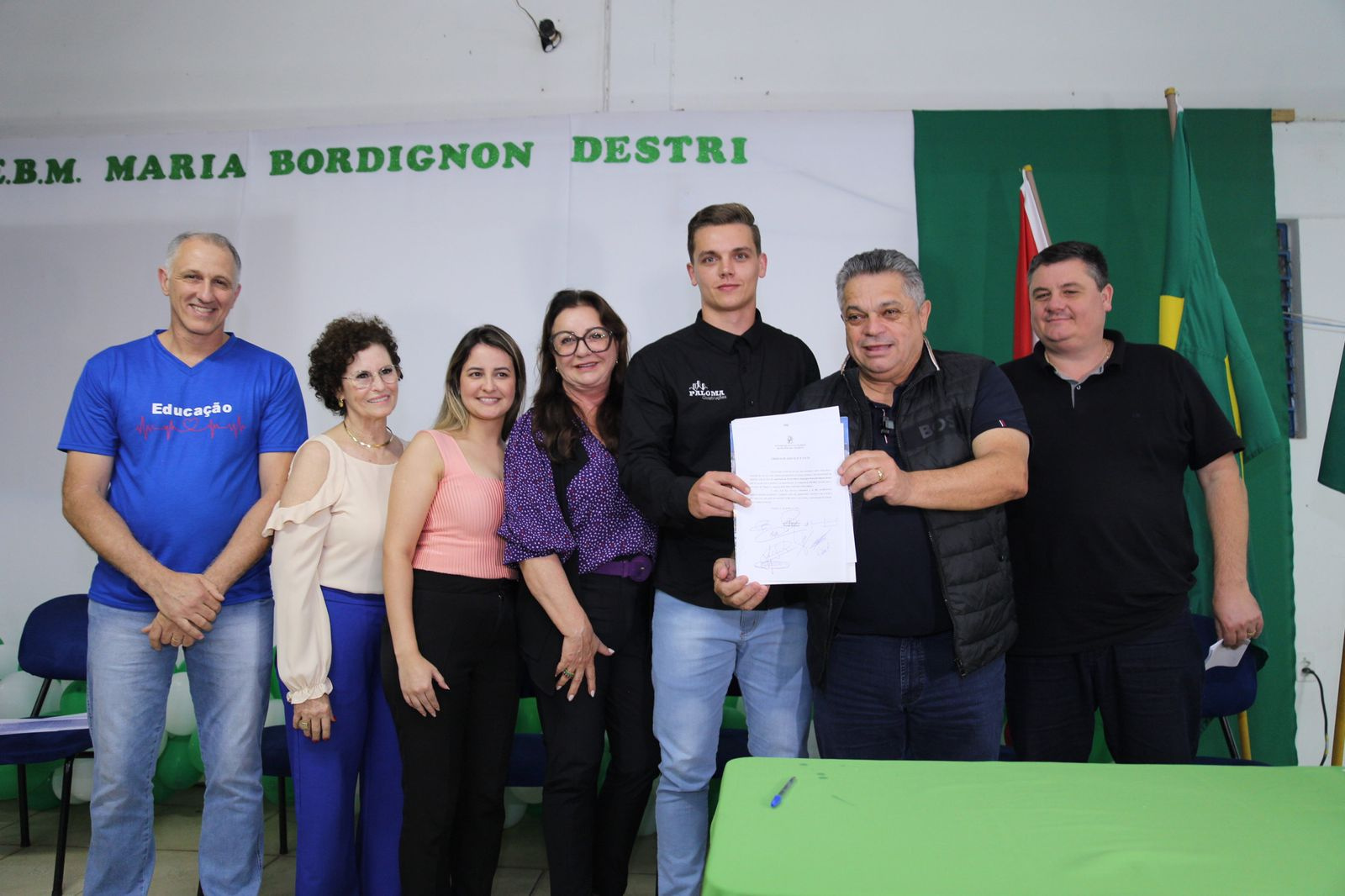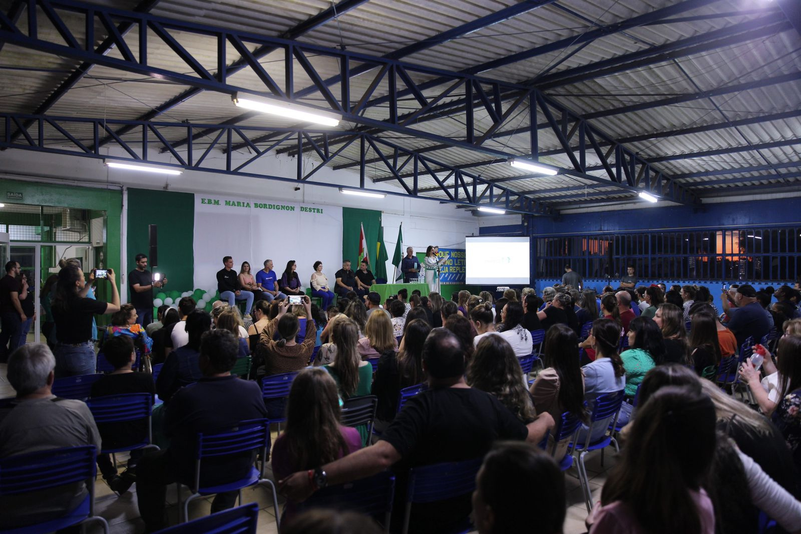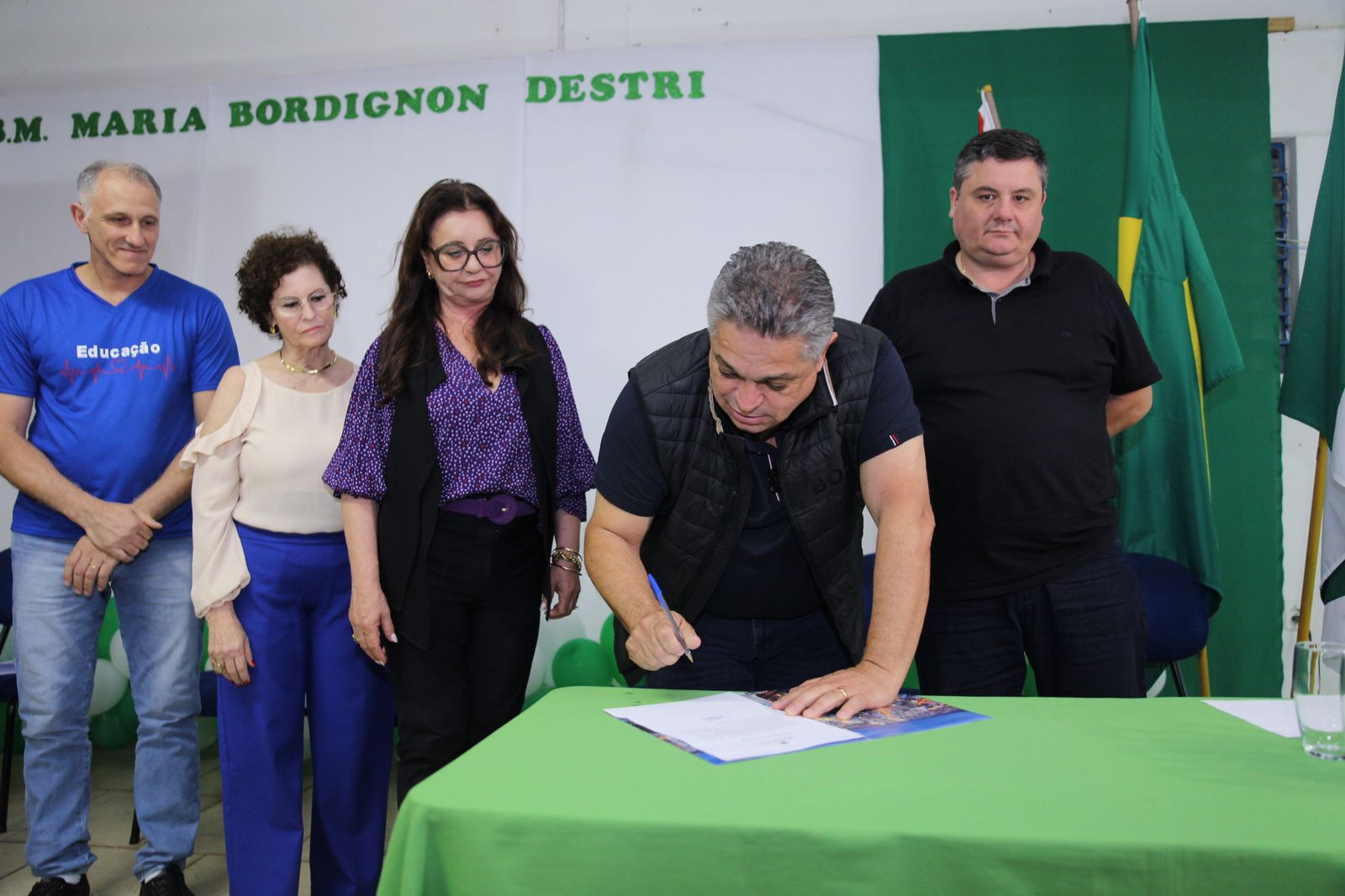 A atual estrutura da EBM Maria Bordignon Destri, que atende cerca de 450 alunos, no bairro Eldorado, dará lugar a uma escola totalmente nova, com 4.992 metros quadrados, com capacidade para 700 alunos, incluíndo um Centro de Educaçao Infantil Municipal em anexo. A ordem de serviço para a obra foi assinada na noite desta terça-feira, pelo prefeito João Rodrigues, em ato realizado na escola. A secretária de Educação, Astrit Tozzo, o secretário de Desenvolvimento Sustentável e Obras Estruturantes, Valmor Scolari e a representante da Câmara de Vereadores, Sueli Suttili, acompanharam o ato, além de outros secretários, vereadores e moradores da comunidade.
