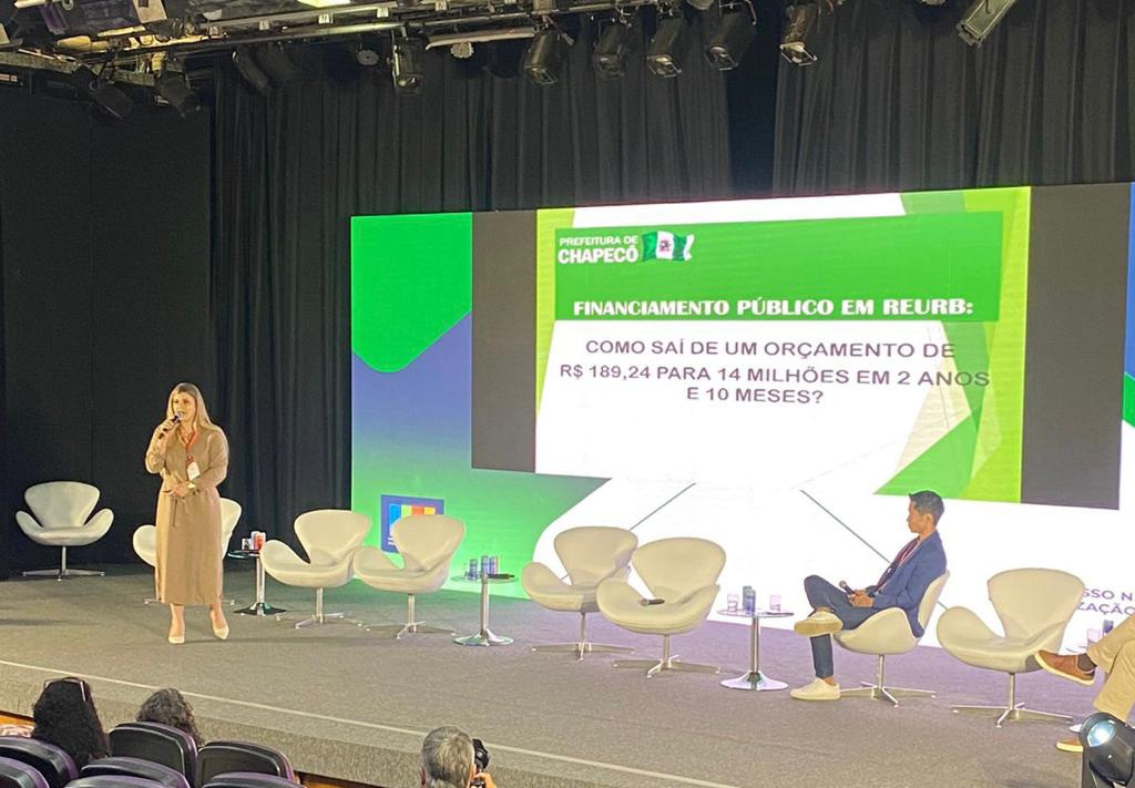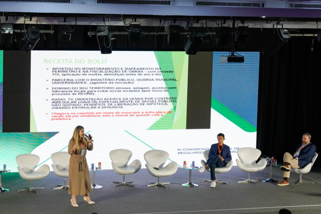 A Diretora de Regularização Fundiária e Habitação Edi Folle, e a servidora analista Rafaela Cella, participaram do III Congresso Nacional de Regularização Fundiária realizado nos dias 30 e 31 de outubro no Teatro Renaissance em São Paulo, onde a Diretora apresentou o trabalho como palestrante convidada do Instituto Brasileiro de Regularização Fundiária (IBRF). O evento reuniu oficiais de cartório, promotores de justiça, advogados, assistentes sociais, agrimensores, arquitetos, engenheiros, bem como desenvolvedores de sistemas e tecnologias em Reurb de todo o país. O evento tem o objetivo de unificar condutas, pacificar e padronizar os procedimentos, além de capacitar agentes públicos e também empresas que atuam com elaboração de projetos e análises de processos administrativos no âmbito da regularização fundiária através da Lei n. 13.465/2017. Edi Folle apresentou o trabalho que vem sendo realizado em Chapecó no painel Empreendedorismo e Financiamento na REURB.