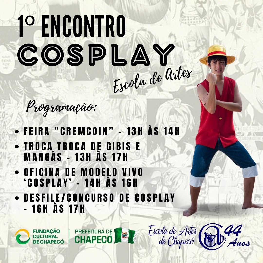 O sábado, dia 09 de dezembro será inédito para os alunos da Escola de Artes de Chapecó. Isso porque a escola promoverá neste dia o 1º Encontro de Cosplay. Cosplay é um termo em inglês, formado pela junção das palavras costume (fantasia) e roleplay (brincadeira ou interpretação) e é considerado uma brincadeira onde os participantes se fantasiam de personagens fictícios.