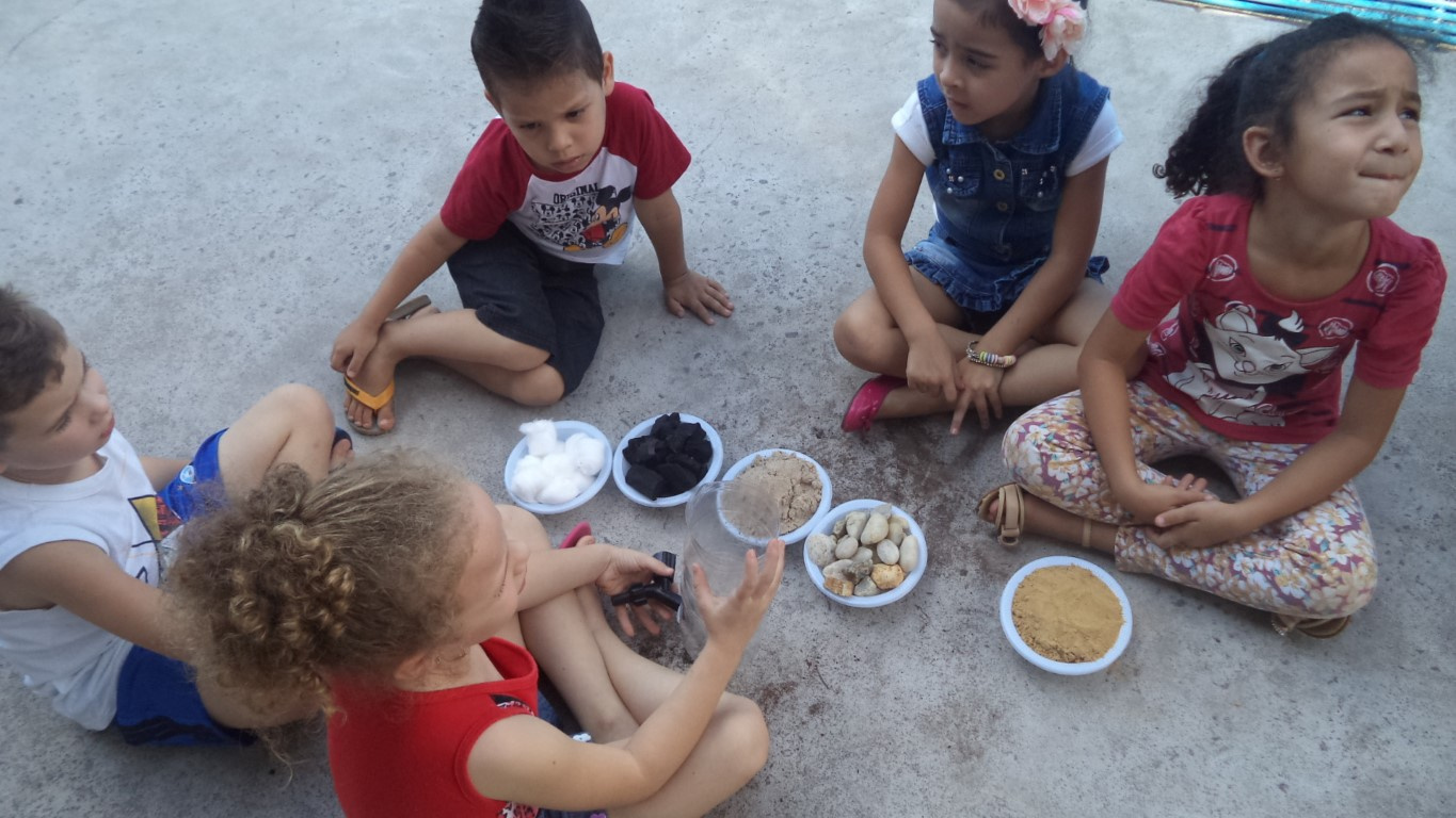 Este foi o projeto desenvolvido pelo CEIM Oracílio Costella do Bairro Efapi, com a turma do pré-escolar de 4 à 5 anos do turno vespertino. De acordo com a professora, Daiane Prado da Rosa, o objetivo principal do projeto é compreender que a água é um recurso indispensável à vida, conscientizando os pequenos que sem ela seria impossível a nossa sobrevivência. Com ajuda de um globo terrestre a professora mostrou para as crianças a quantidade de água e terra que possui no mundo, sendo que desta, apenas 2,4% da água é doce. Desse percentual, uma grande parcela encontra-se poluída, diminuindo ainda mais as reservas disponíveis. A atividade surgiu da preocupação das próprias crianças e o resultado foi bastante positivo, pois as crianças estão comentando entre si, sabem explicar o material utilizado para construir um filtro e estão ansiosas pois os filtros serão sorteados entre eles para levar para casa, explicou.
