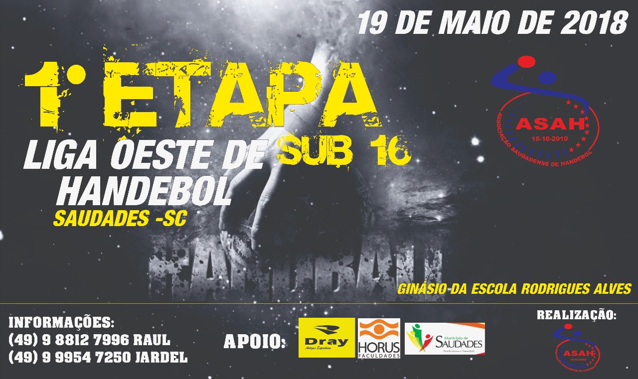 Atletas do handebol masculino de Chapecó estão em Saudades para a primeira etapa da Liga Oeste sub 16 de Handebol no Ginásio da Escola Rodrigues Alves. O evento será realizado neste sábado (19) e Chapecó aproveita o evento para preparar a equipe para os próximos torneios que fazem parte do calendário anual.