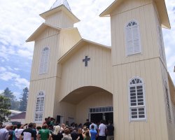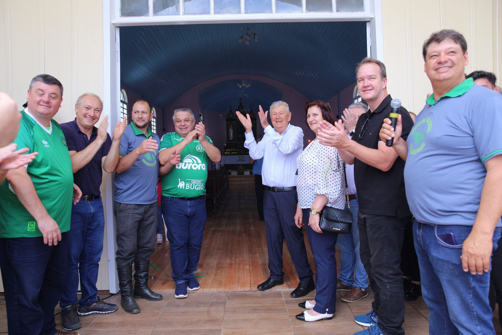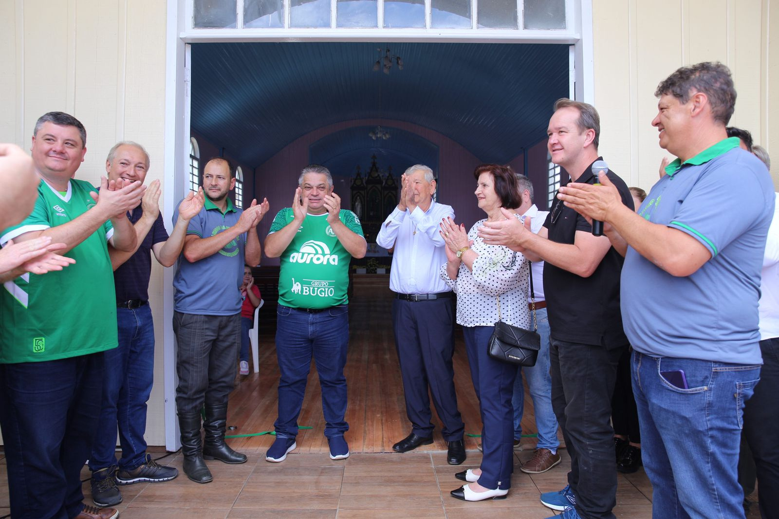 Foi reinaugurada neste domingo a Igreja São João Batista, na Linha Serrinha, após trabalho de reforma e restauração. Para marcar ato, que contou com a presença do prefeito João Rodrigues, secretários, vereadores e moradores da comunidade; teve missa, homenagens e almoço comunitário.
