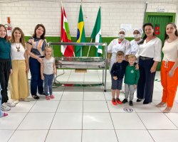 A secretaria organizou a instalação do material e após a conclusão desta etapa, as equipes de merendeiras receberão treinamento para utilizarem e manusearem o material de maneira adequada. Algumas instituições já passaram por esse processo, como é o caso da EBM Jacob Gisi, no bairro Engenho Braun. Por isso, a entrega simbólica dos equipamentos ocorreu, nesta sexta-feira, nas dependências da escola.