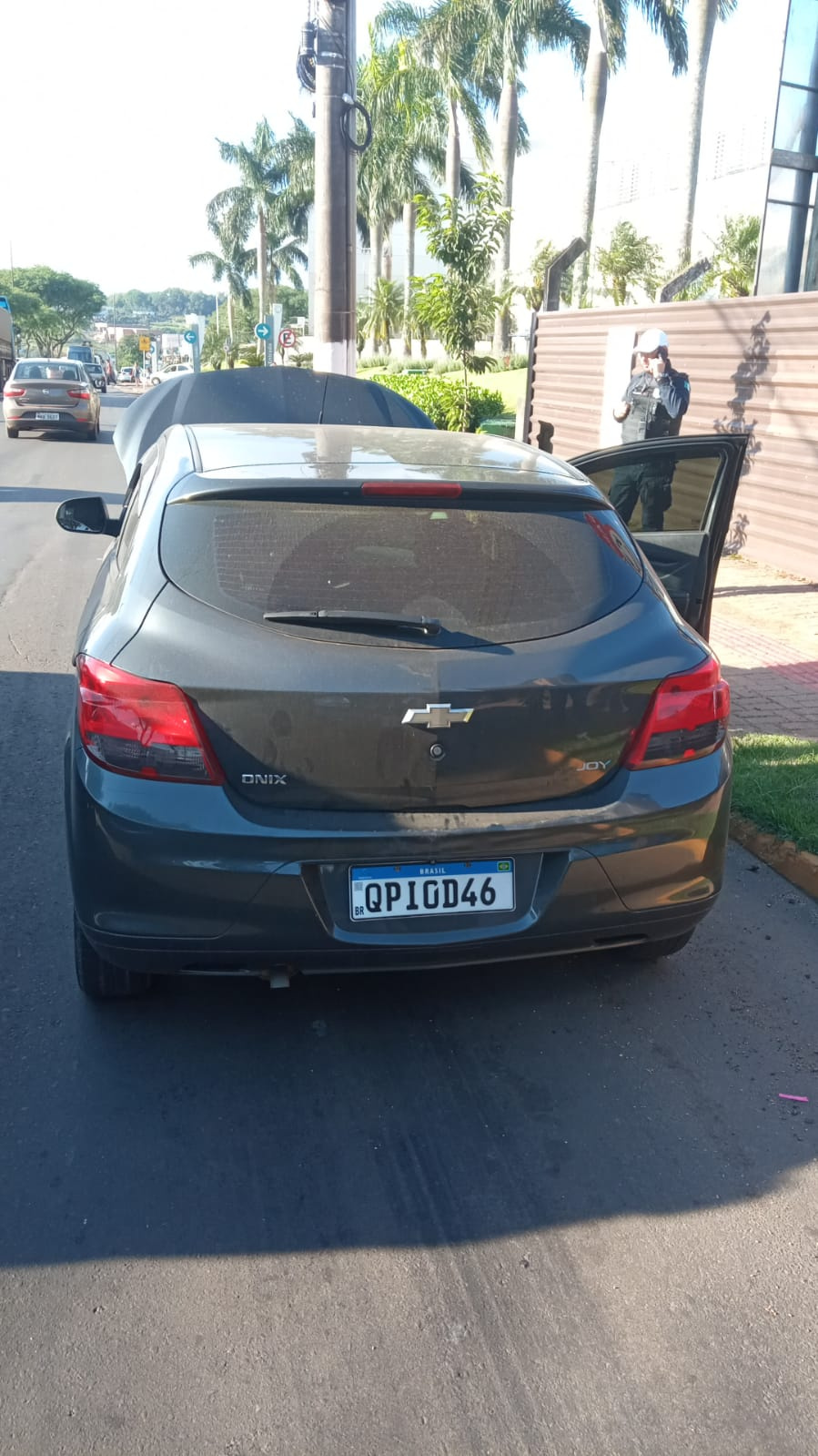 Uma Guarnição dos Agentes de Trânsito estava em rondas pela área central quando receberam comunicado via rádio da Central de Operações (CEOP), informando que havia um veículo Chevrolet Onix de cor Cinza, de placas QPI**46, que estaria transitando na cidade de Chapecó e que supostamente seria clonado de um outro Chevrolet Onix da cidade de Santa Izabel no Estado de São Paulo.