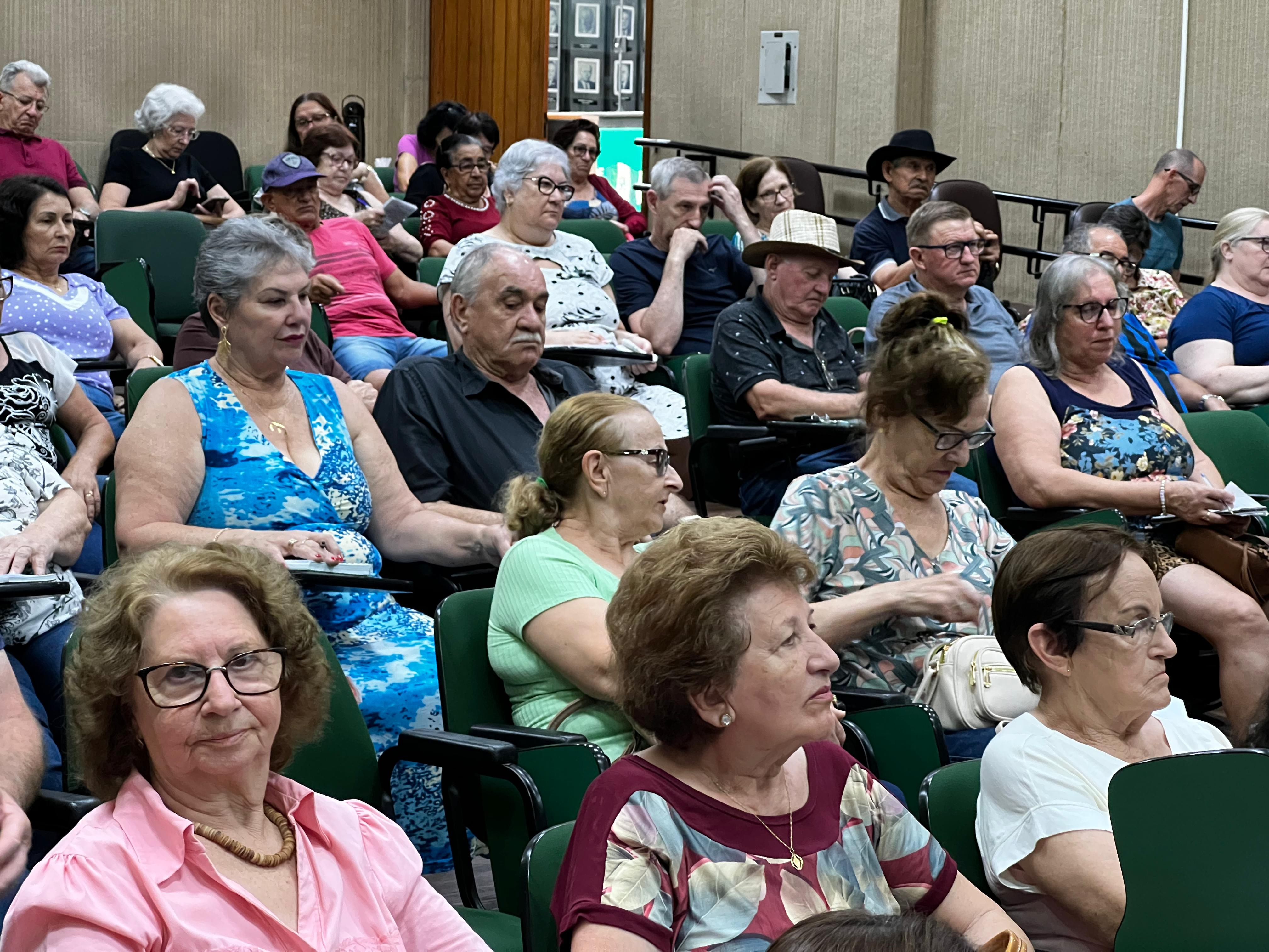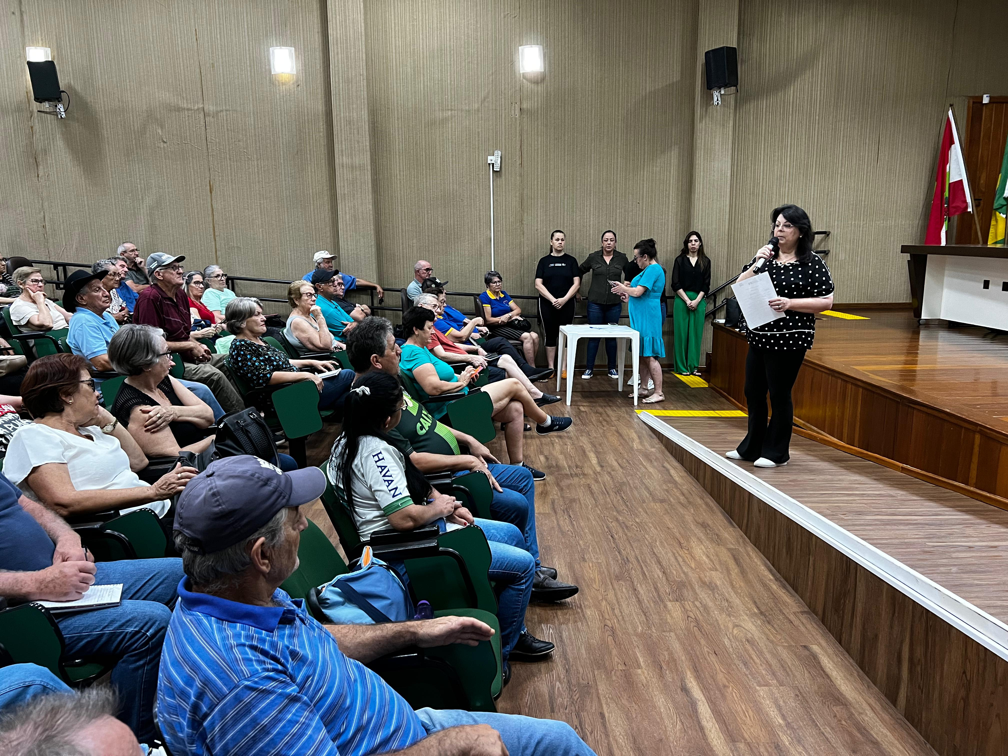 Na manhã desta segunda-feira a Secretaria da Família e Proteção Social reuniu representantes dos grupos de idosos de Chapecó, no auditório da Prefeitura.