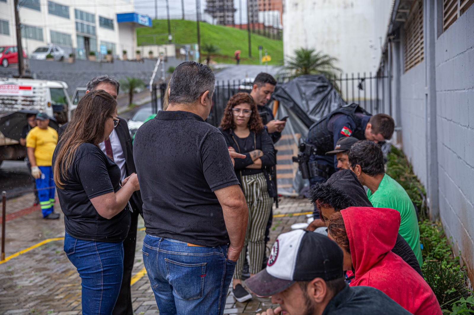 Participaram da ação 27 pessoas incluíndo o prefeito João Rodrigues, Diretoria de Segurança Pública, Polícia Militar, Guarda Municipal, Secretaria da Família e Proteção Social, Secretaria de Saúde e o conselheiro de segurança pública do Município, Márcio Bueno.