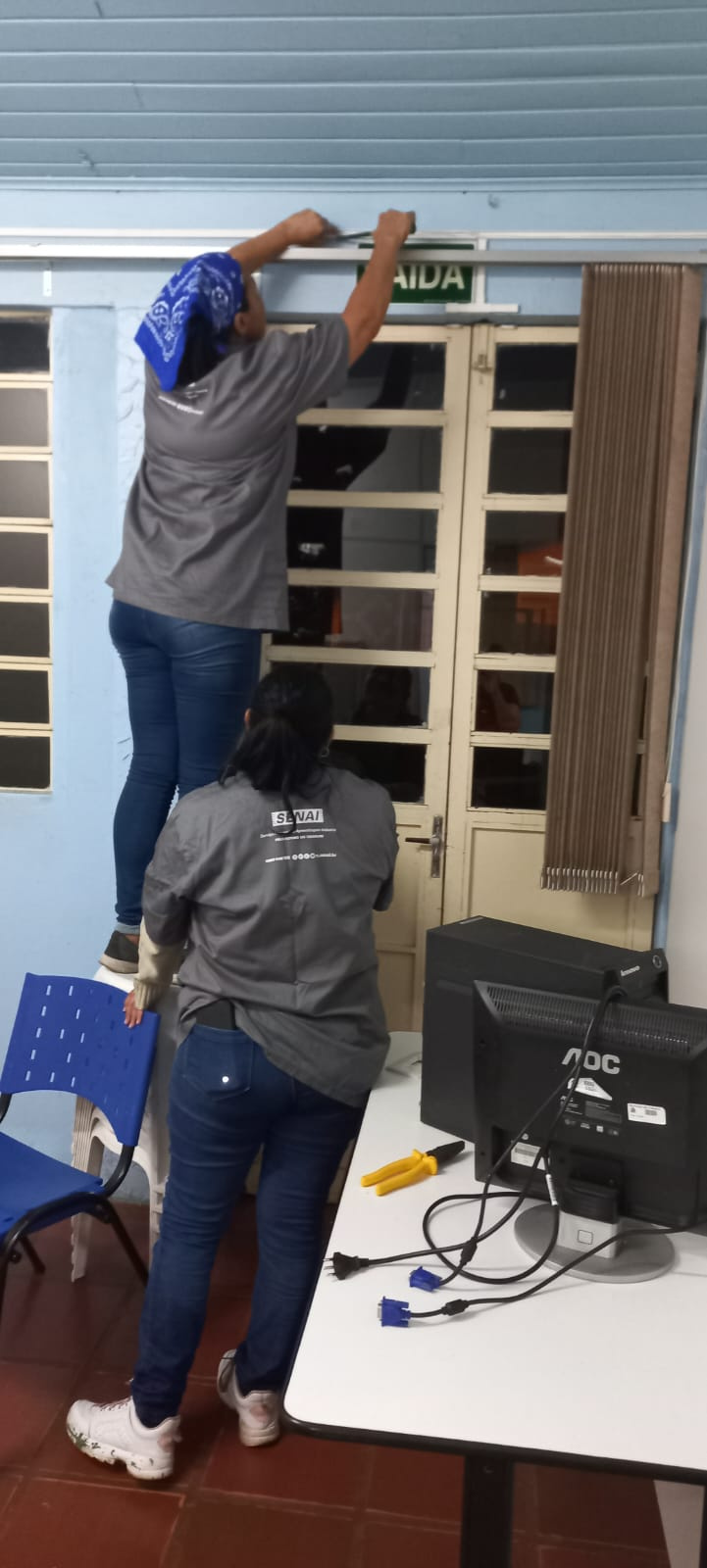 O curso tem um total de 100 horas de aulas. Nesta semana, teve aula prática do curso, que foi realizada no Centro de Referência de Assistência Social - CRAS Cristo Rei. A aula foi na parte elétrica de duas salas novas e na manutenção e troca de tomadas.