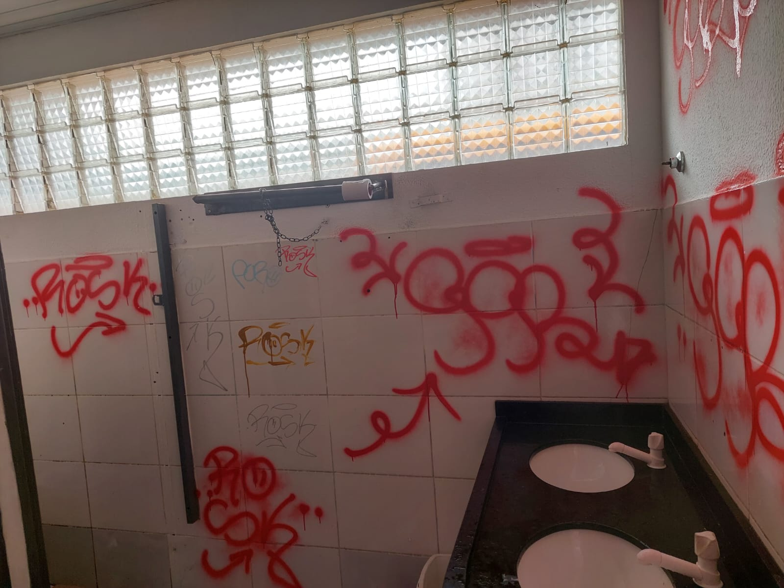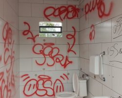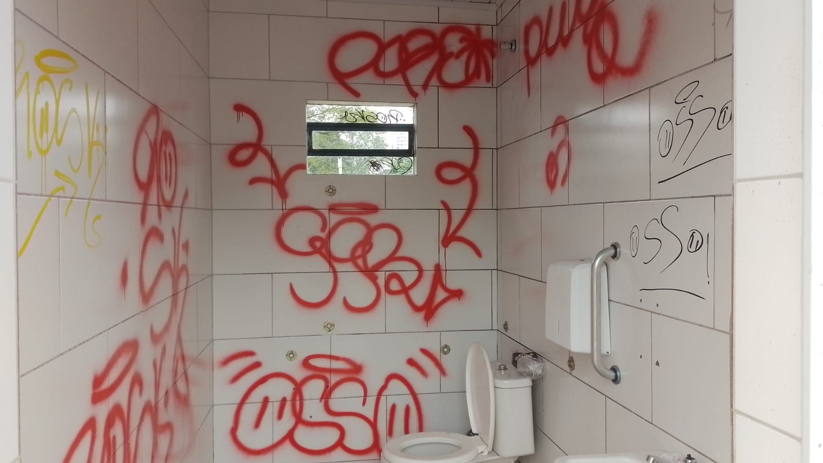 A Secretaria de Serviços Urbanos e Zeladoria de Chapecó registrou nesta semana pichações e danos em dois espaços públicos de Chapecó. Um deles foi nos banheiros do Terminal Urbano e outro foi na Praça Generoso do Amaral, no Passo dos Fortes.