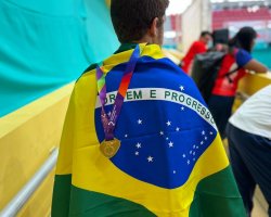 Estou muito feliz com o resultado. Chegar aqui já é uma grande conquista, mas essa medalha de ouro é fruto de muito treino, dedicação e sacrifícios. É uma honra representar meu país, meu estado, cidade e clube. Agradeço de coração, a todos que torceram por mim mesmo de longe e pelas mensagens de apoio. Obrigado por acreditarem em mim, com certeza eu não teria chegado até aqui sem todo o apoio que recebi, ressalta, Tomaz.