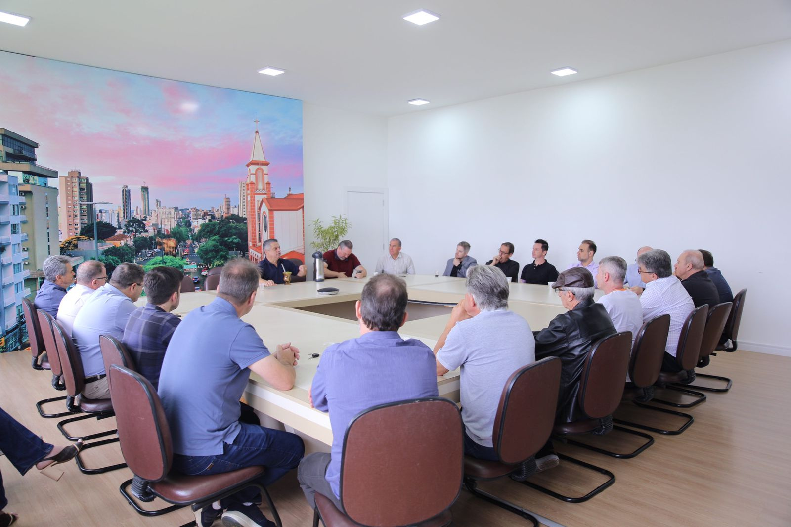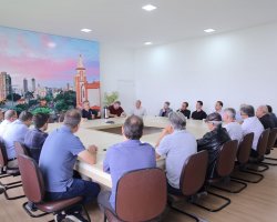 Na manhã desta quinta-feira o prefeito de Chapecó, João Rodrigues, falou sobre a implantação do Plano de Mobilidade Urbana para representantes da diretoria do Centro Empresarial de Chapecó, ACIC, CDL, SICOM, presidentes de sindicatos, da concessionária de transporte coletivo e de entidades representativas da sociedade chapecoense. Os vereadores André Kovaleski e Valdir Carvalho acompanharam a reunião. Também esteve presente o secretário de Governo e Inovação em Serviços Públicos, Thiago Felipe Etges.