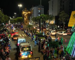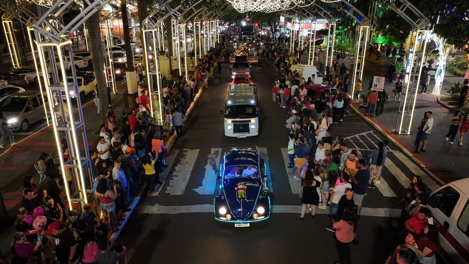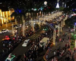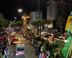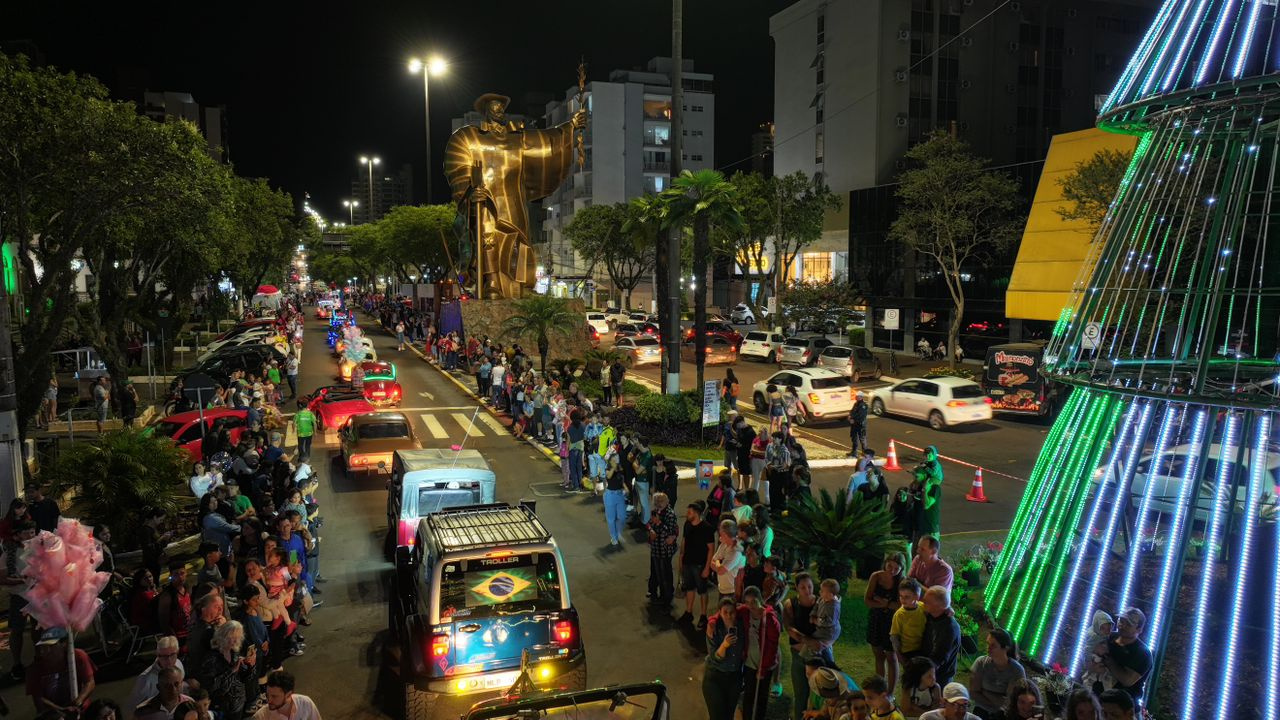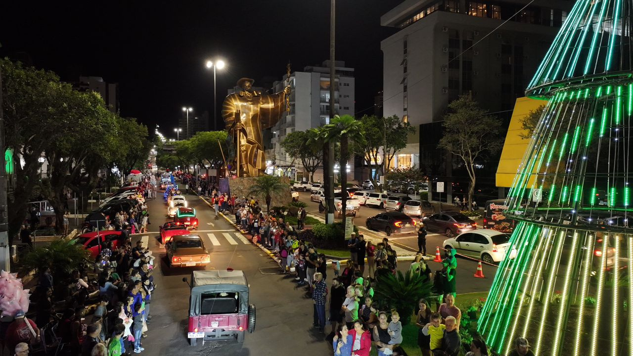A Prefeitura de Chapecó promoveu um Desfile Natalino nesta sexta-feira, na Avenida Getúlio Vargas, com a participação de cerca de 700 pessoas e 58 veículos, representando 18 entidades. O trenó do Papai Noel abriu o desfile, que saiu da rua Benjamin Constant e foi até a rua Floriano Peixoto.