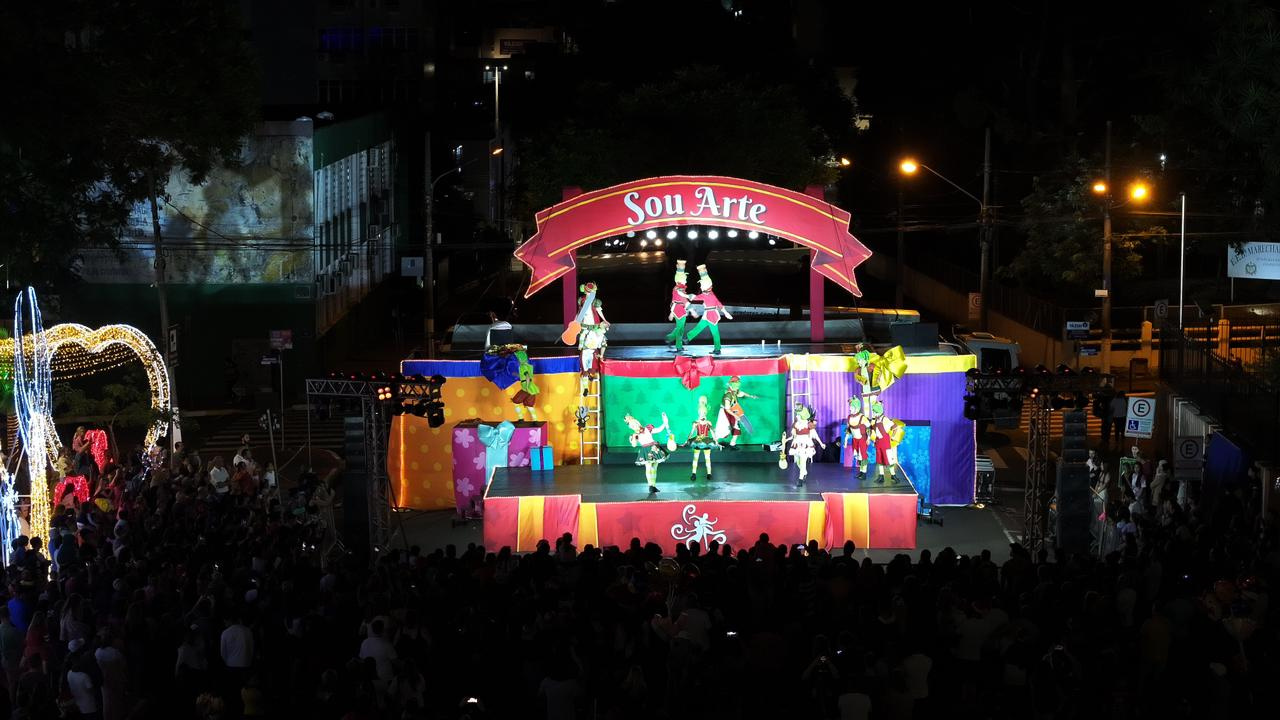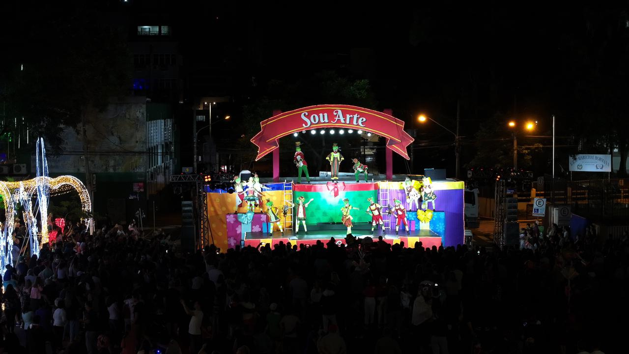 Logo depois teve um show com o grupo Sou Arte, no palco montado na rua Floriano Peixoto, entre a Catedral Santo Antônio e a Praça Coronel Bertaso.