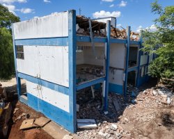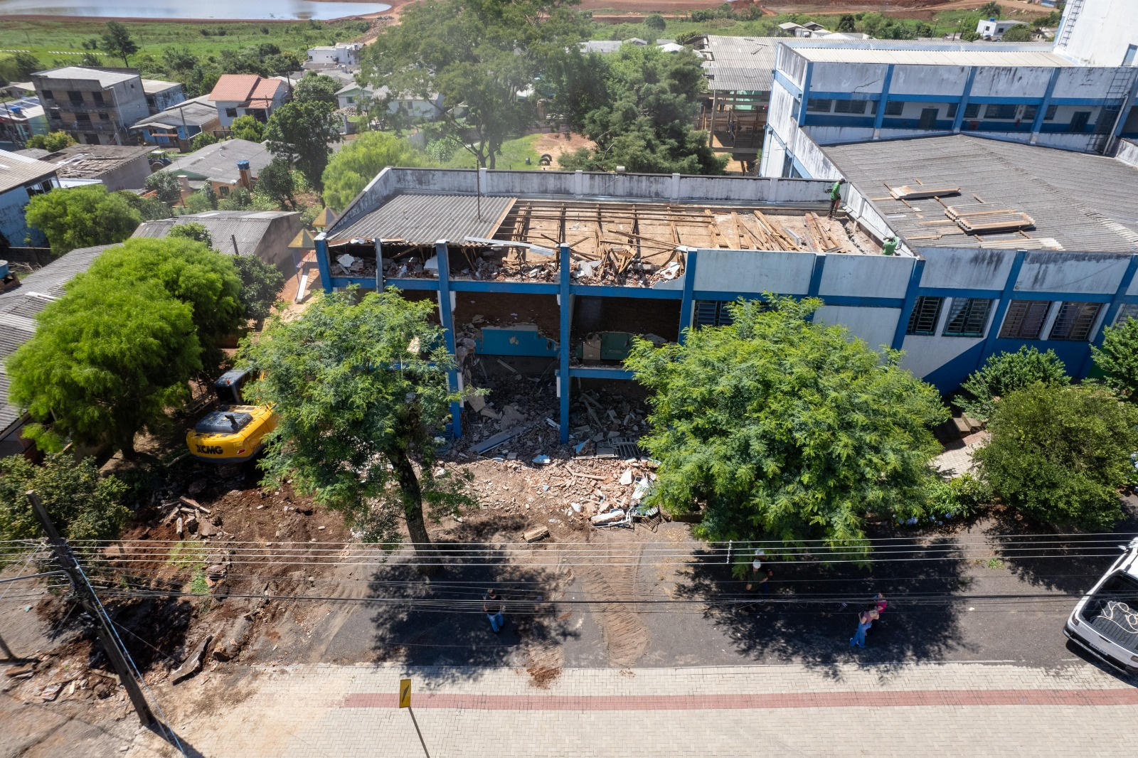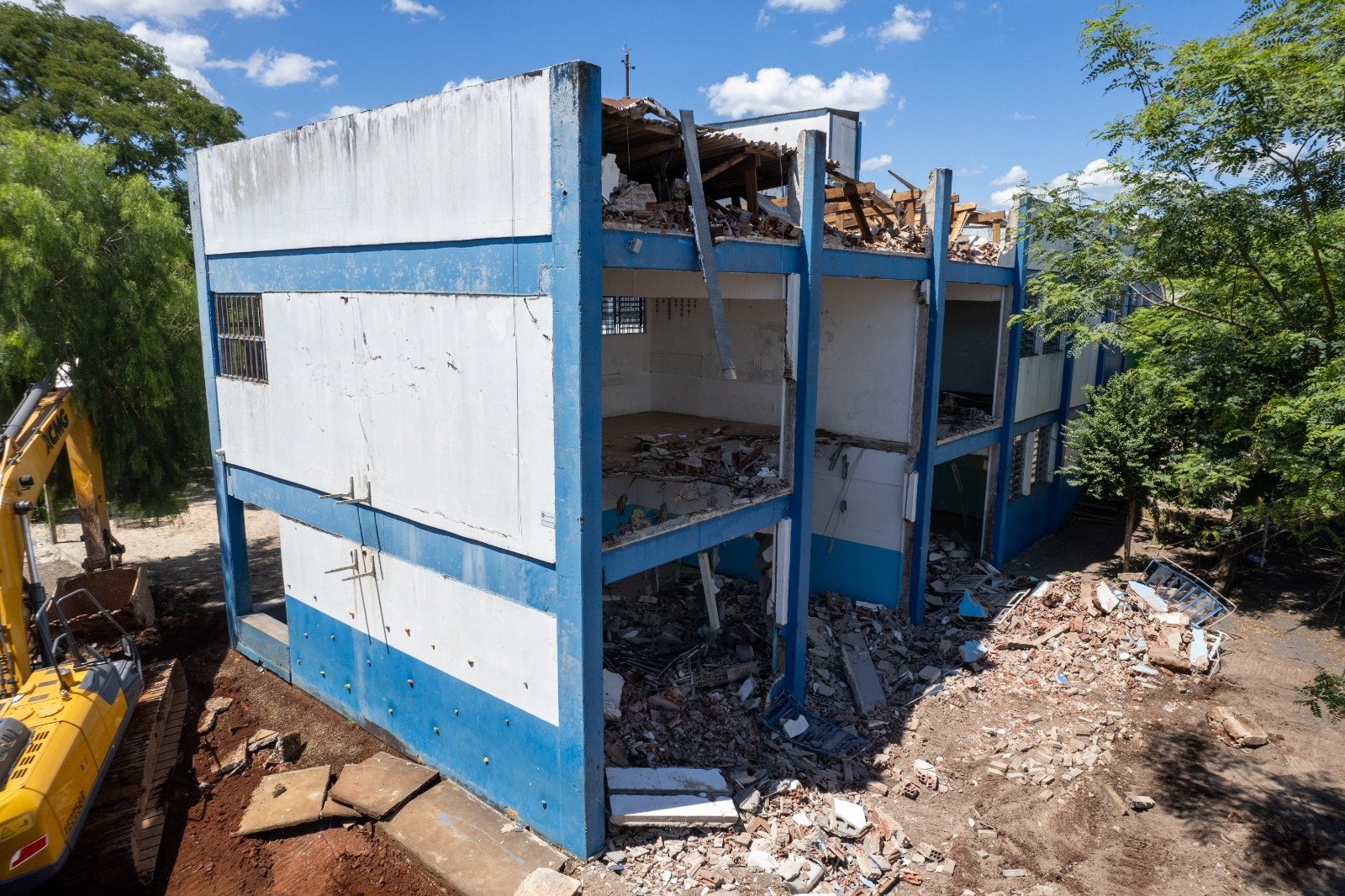 A demolição de uma parte da EBM Maria Bordignon Destri, do bairro Eldorado, iniciou na última terça-feira (12). A nova estrutura está avaliada em aproximadamente 15 milhões de reais e o espaço terá uma área com cerca de 4.900 metros quadrados.