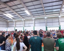 Amanda Giordan, filha dele, também falou e disse que espera que no ginásio surjam muitos atletas que representem Chapecó.