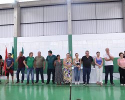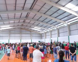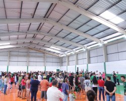 Familiares de Amauri Giordan estiveram no ato de inauguração, que foi dentro do ginásio.