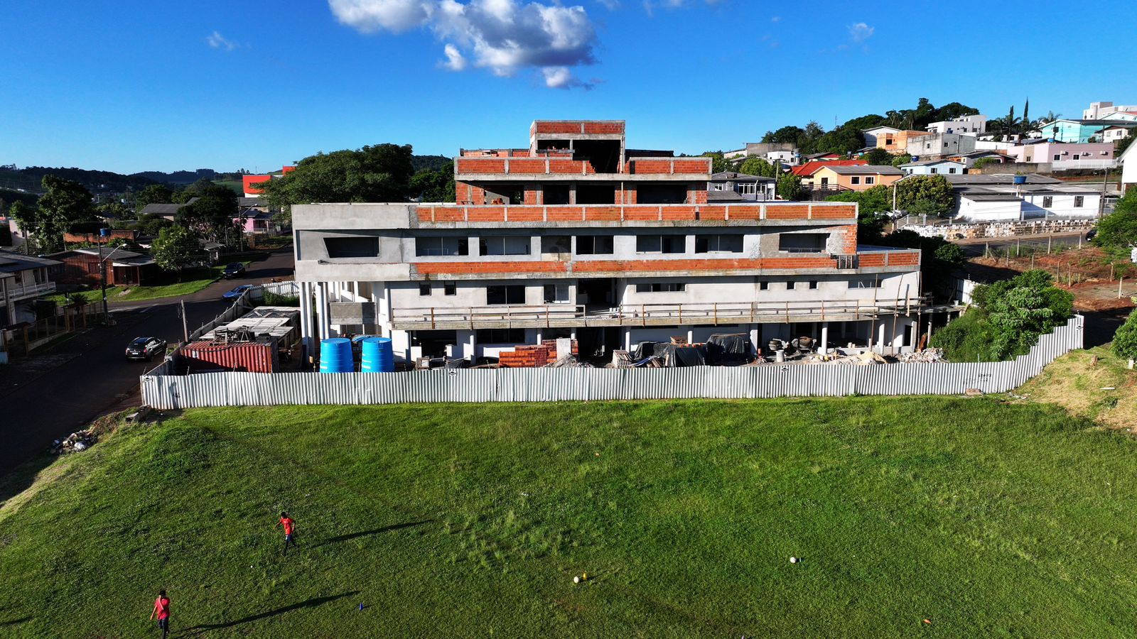 As obras do Centro Multiuso do bairro Esplanada estão em 47% segundo o secretário de Desenvolvimento Sustentável e Obras Estruturantes. Isso tanto na área esportiva, que é o campo de grama sintética, quanto do prédio, que terá alas de aula para oficinas de robótica, informática e artes.