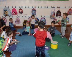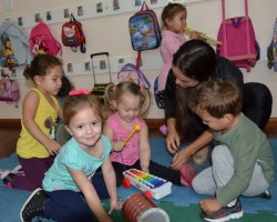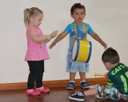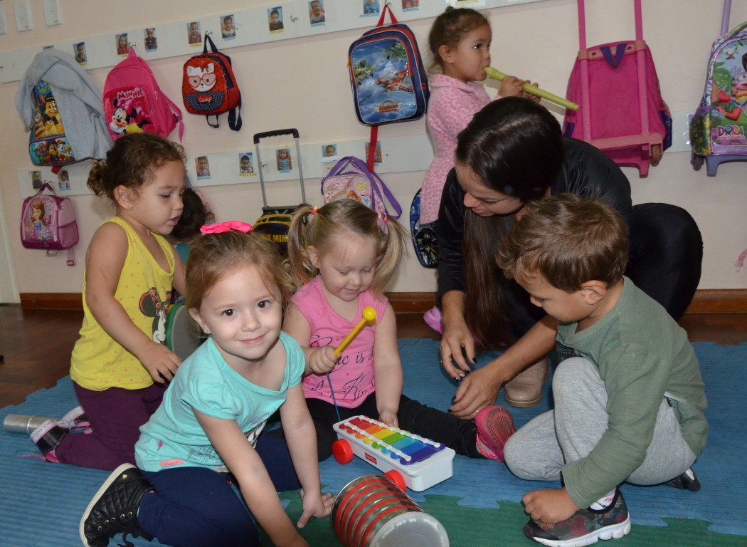 De acordo com a professora Juliana Reis, que trabalha Linguagens com a turma do Maternal, aproximar eles para convivência através da interação e participação ativa das brincadeiras desenvolve a atenção e amplia o vocabulário. Todos adoram música, ouvem o som e querem ouvir novamente. No início demorava um pouquinho para se organizarem, mas agora, quando sabem que teremos música, já correm para tocar os instrumentos ou cantarolar e gesticular de acordo com a cantiga, explicou.