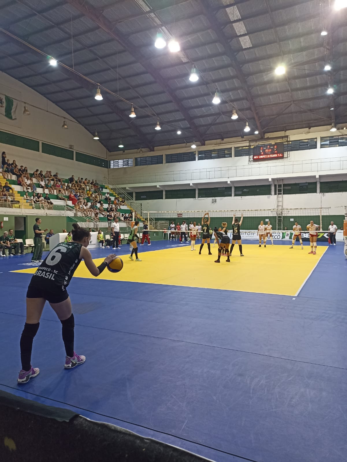 O jogo começou melhor para a equipe Carioca do Tijuca Tênis Clube, com atletas experientes as visitantes abriram 2 a 0 no jogo com parciais de 27x25 e 25x23. Aos poucos a equipe Chapecoense foi melhorando dentro de quadra e o jogo foi fluindo, com muito volume de jogo o terceiro set teve o placar de 25x19 para Chapecó, com a vitória no terceiro set o time da Prefeitura de Chapecó/ACV/Unoesc cresceu no jogo, o quarto set teve vitória por 25x23, empatando o jogo em 2x2 e levando o jogo para o decisivo set. No Tiebreak as Chapecoenses entraram muito motivadas e fizeram um set perfeito, vencendo por 15x10 e marcando os primeiros dois pontos na competição. Para o técnico Michel Guimarães o principal foi somar os dois pontos, a vitória é muito importante pelo aspecto moral, mas o principal foi a raça, a entrega, a garra e a superação, porque esses aspectos são importantes para a sequência. Mas é evidente que ainda temos muitos aspectos para corrigir, ainda erramos bastante mas vamos corrigir durante a semana, as meninas estão de parabéns pela vitória e por se entregarem tanto na partida disse o treinador. Já a atleta Camila Eduarda Dos Santos comenta a estreia sempre tem um sentimento de ansiedade, a torcida inteira veio aqui ver a gente hoje e foi incrível começar com uma vitória dessas de virada em casa disse a atleta.