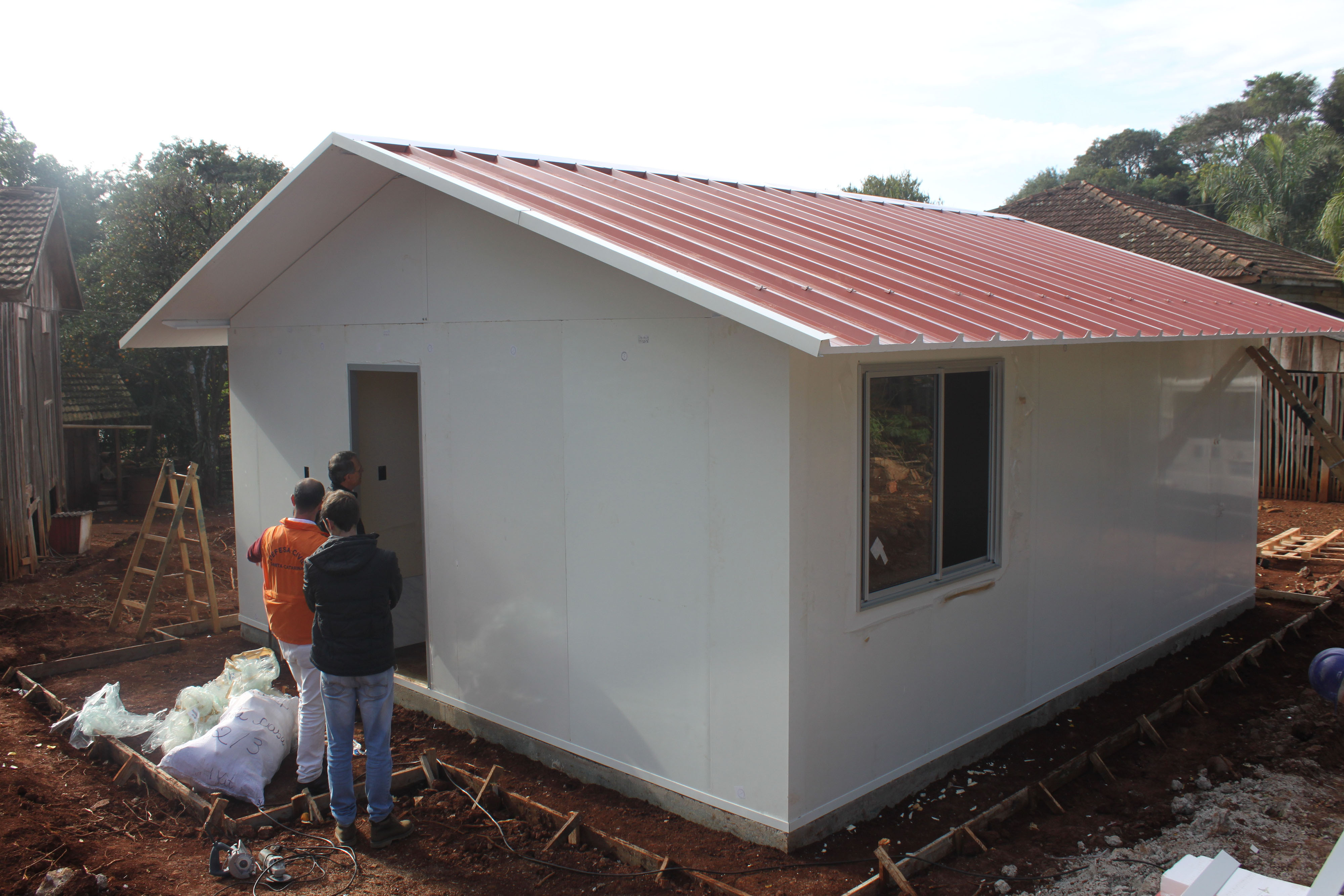 As casas modulares estão sendo montadas pela Secretaria de Estado da Defesa Civil, a previsão é que sejam finalizadas até a primeira quinzena de junho, o investimento é de R$ 52 mil por unidade, os recursos são do Fundo Estadual de Proteção e Defesa Civil.O secretário Executivo da Agência de Desenvolvimento Regional (ADR) Chapecó, Sérgio Galli, o gerente de Infraestrutura Leonardo Colpani e coordenador Regional da Defesa Civil, Clair Bazzi, foram verificar o andamento das obras na quinta-feira (24).