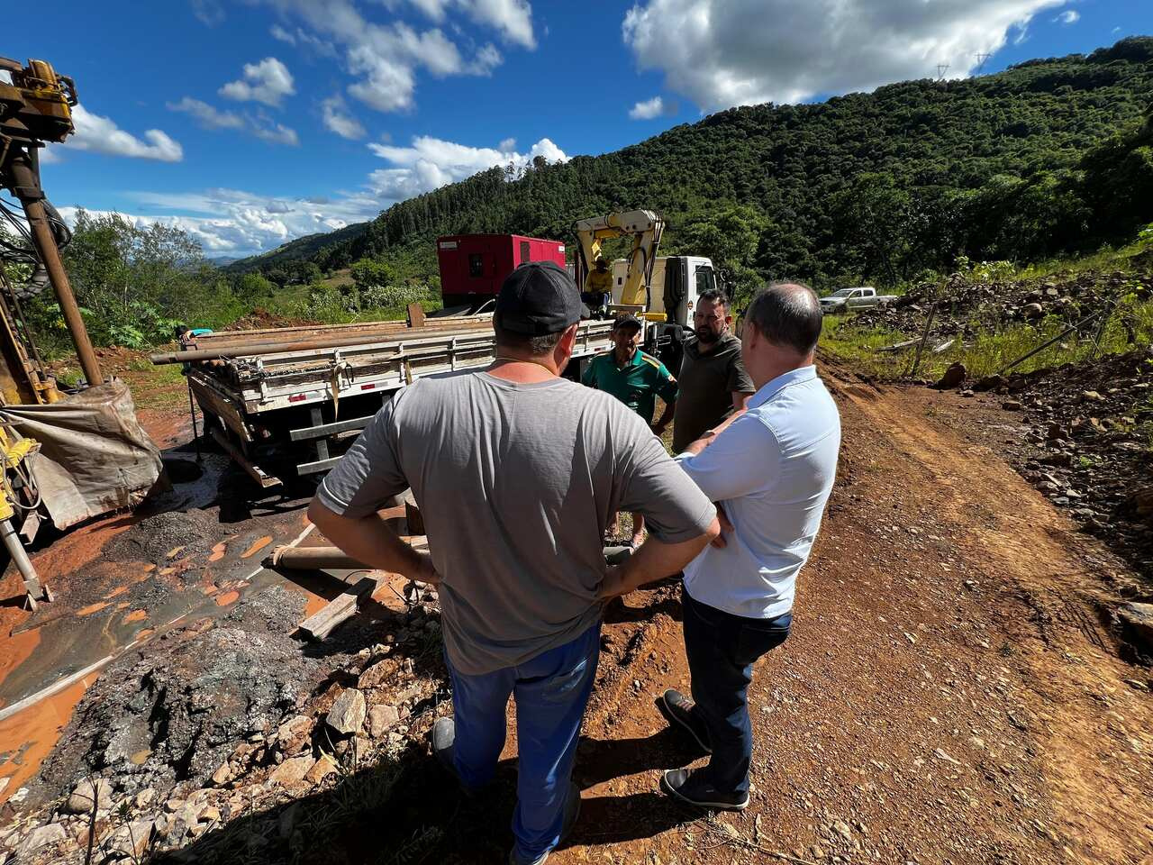 O prefeito em exercício, Itamar Agnoletto, acompanhado pelo diretor de Agricultura, Jonas Bringhenti, realizaram uma visita à região da Linha Lajeado Veríssimo. A visita foi para verificar o andamento da perfuração de um novo poço artesiano que beneficiará mais de 30 famílias da comunidade.