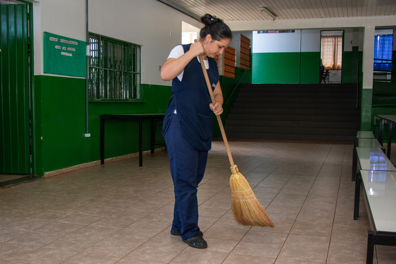 Nós estamos deixando tudo limpo para receber os alunos, para que eles se sintam bem e aprendam! Quando eles chegam é uma alegria! Estamos ansiosos para receber todos os estudantes, disse Cleicimara da Silva, que faz parte da equipe de limpeza de uma das escolas da Rede Municipal.