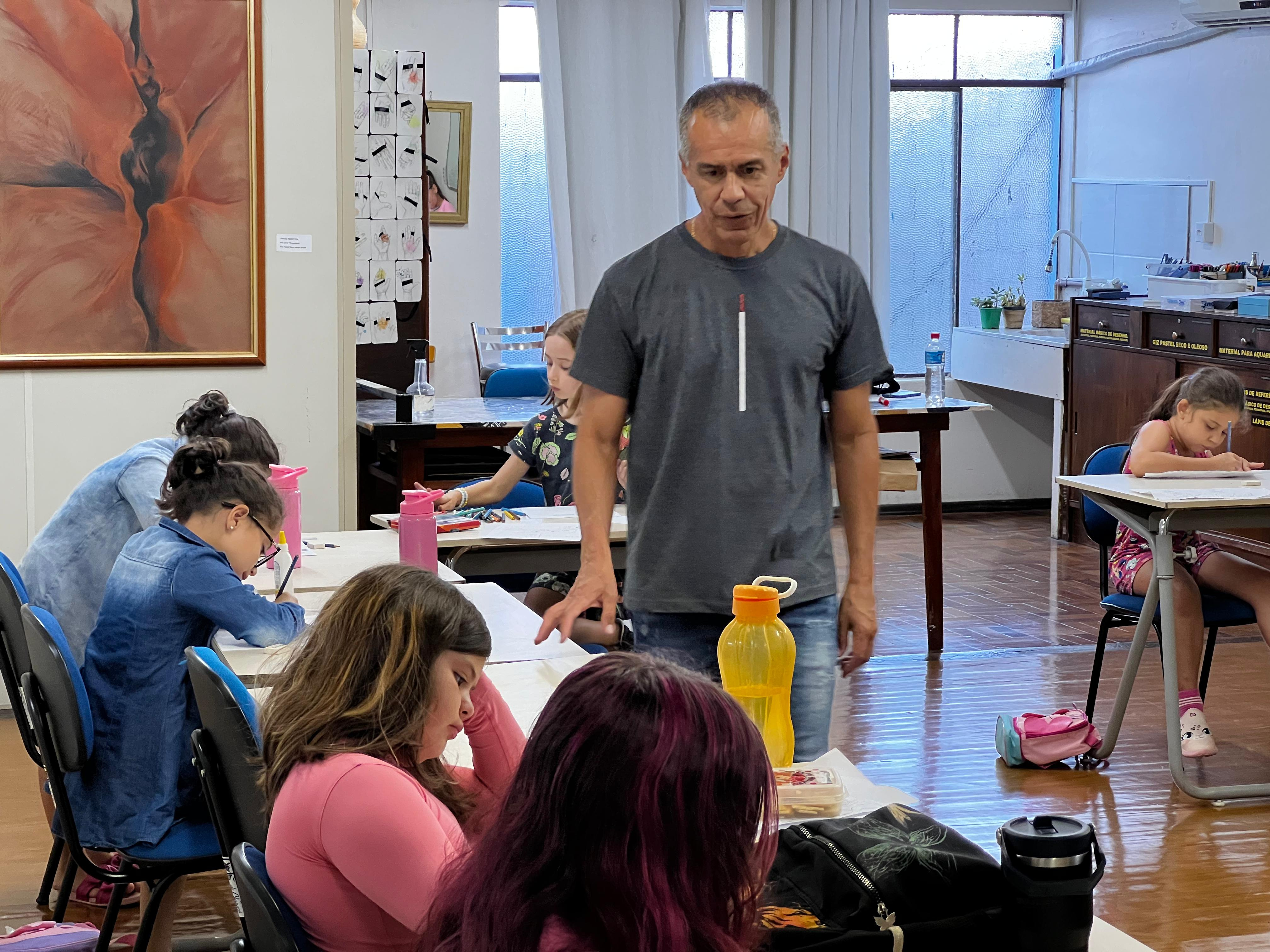 O professor responsável pela oficina, Alexander Castañeda, compartilhou sua visão sobre o propósito do curso: "É uma oficina de uma semana. Mas, simplesmente aproximar um pouquinho eles com a parte artística, para eles desenvolverem."