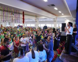 Muita música, animação e alegria. Assim foi o Carnaval dos Idosos, que aconteceu nesta terça-feira (06) no Centro de Cultura e Eventos e reuniu cerca de 600 participantes. A diversão foi garantida, com espaço decorado e uma equipe preparada para receber aos foliões.