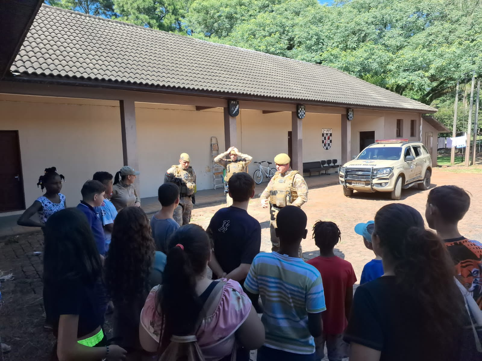 O Centro de Convivência Efapi, serviço da Prefeitura vinculado à Secretaria da Família e Proteção Social de Chapecó, proporcionou um passeio ao 2o Batalhão de Polícia Militar de Chapecó, na segunda-feira, para as crianças e adolescentes que estão frequentando a Colônia de Férias.