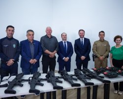 O prefeito de Chapecó, João Rodrigues, deu a posse oficial aos novos integrantes da Segurança Pública e anunciou que serão chamados em breve mais 15 formandos para integrar o efetivo da Guarda Municipal e a aquisição de mais dez pistolas pistolas de choque Spark, além das dez que foram entregues nesta quarta-feira. Os demais equipamentos entregues foram dez carabinas Taurus 9mm e duas viaturas SUV Mitsubishi. Outros dois veículos estão em processo de compra.