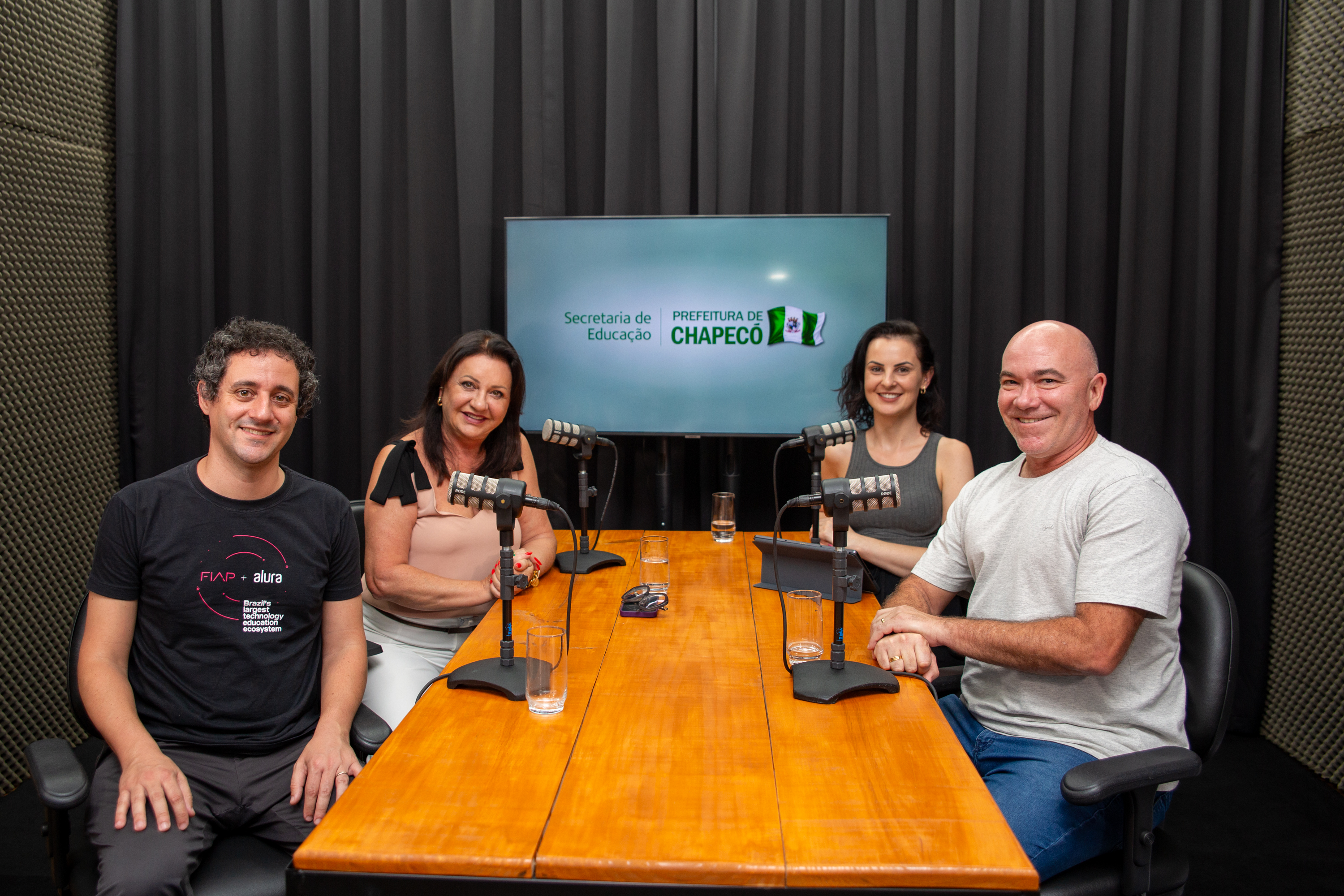 A equipe da Alura está na cidade para contribuir com a formação dos professores que trabalharão a disciplina de pensamento computacional nas escolas da Rede Municipal. Ela foi incluída no currículo do município e é uma novidade para os estudantes de 6º a 9º ano, do Ensino Fundamental, neste ano de 2024.